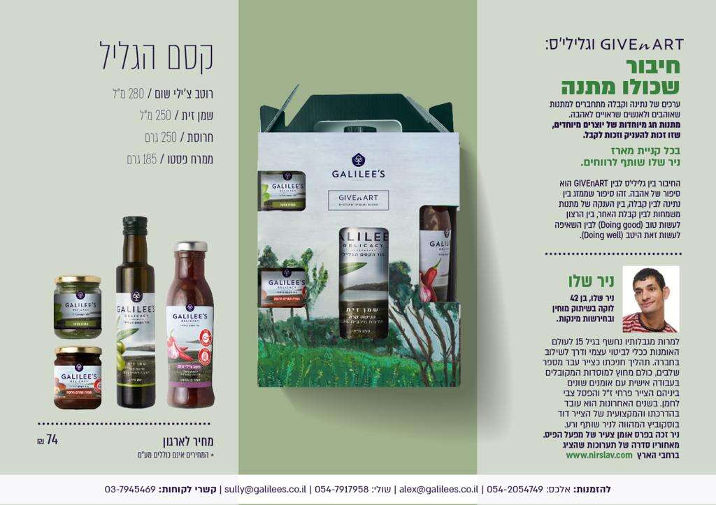 אם תכננתם לקנות מארזי מתנה לחג, תוכלו הפעם גם ליהנות ממארז מיוחד וגם להעניק למיזם החברתי של גלילי'ס בשיתוף GIVE and ART, שמשתף אמנים עם צרכים מיוחדים בעיצוב המארז, והם מקבלים חלק מההכנסות.
