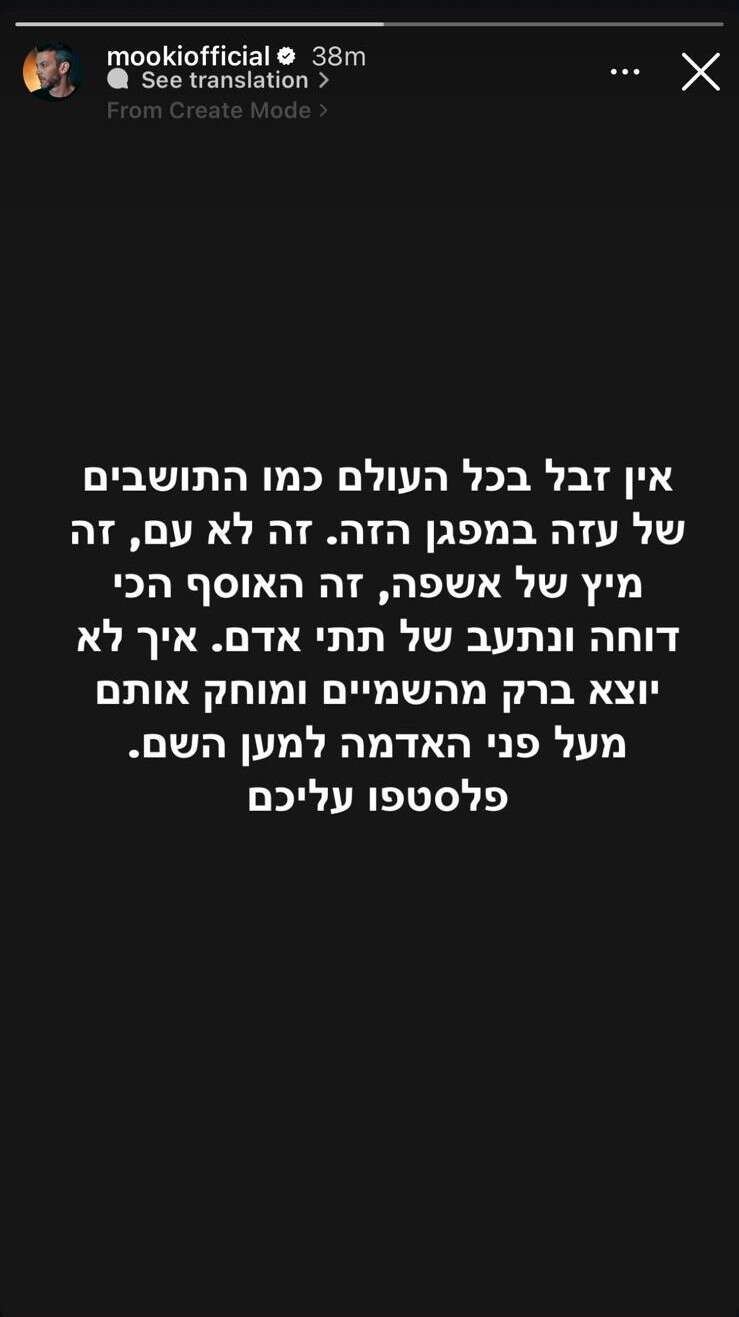 הזמר מוקי העלה היום (חמישי) סטורי זועם לחשבון האינסטגרם שלו, נגד תושבי עזה, שהתפרעו והשתוללו בעת שחרור החטופים הישראלים משבי חמאס.