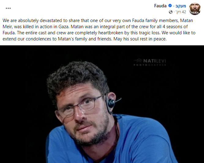 "הערב משפחת פאודה התבשרה שחבר צוות ההפקה של הסדרה, רס"ר (מיל') נפל בקרב, יהיה זכרו ברוך", כתב יוצר הסדרה אבי יששכרוף בחשבון הטוויטר שלו.