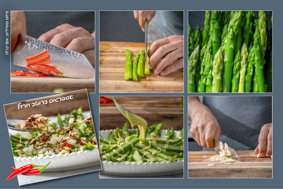 5. פורסים את האספרגוס לאורך לפרוסות ארוכות.
