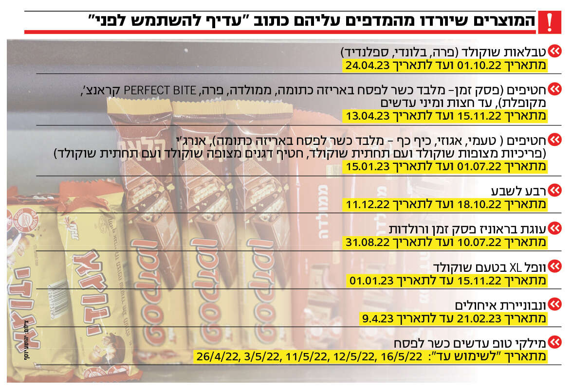רשימת המוצרים, עם התאריך "עדיך להשתמש לפני"