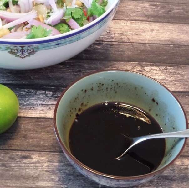 בקערה נפרדת מערבבים את חומרי הרוטב - 4 כפות רוטב סויה, 1 כף מלאה ממרח תמרהינדי, 1/2 כוס מים ו-1 כף מלאה סוכר חום.