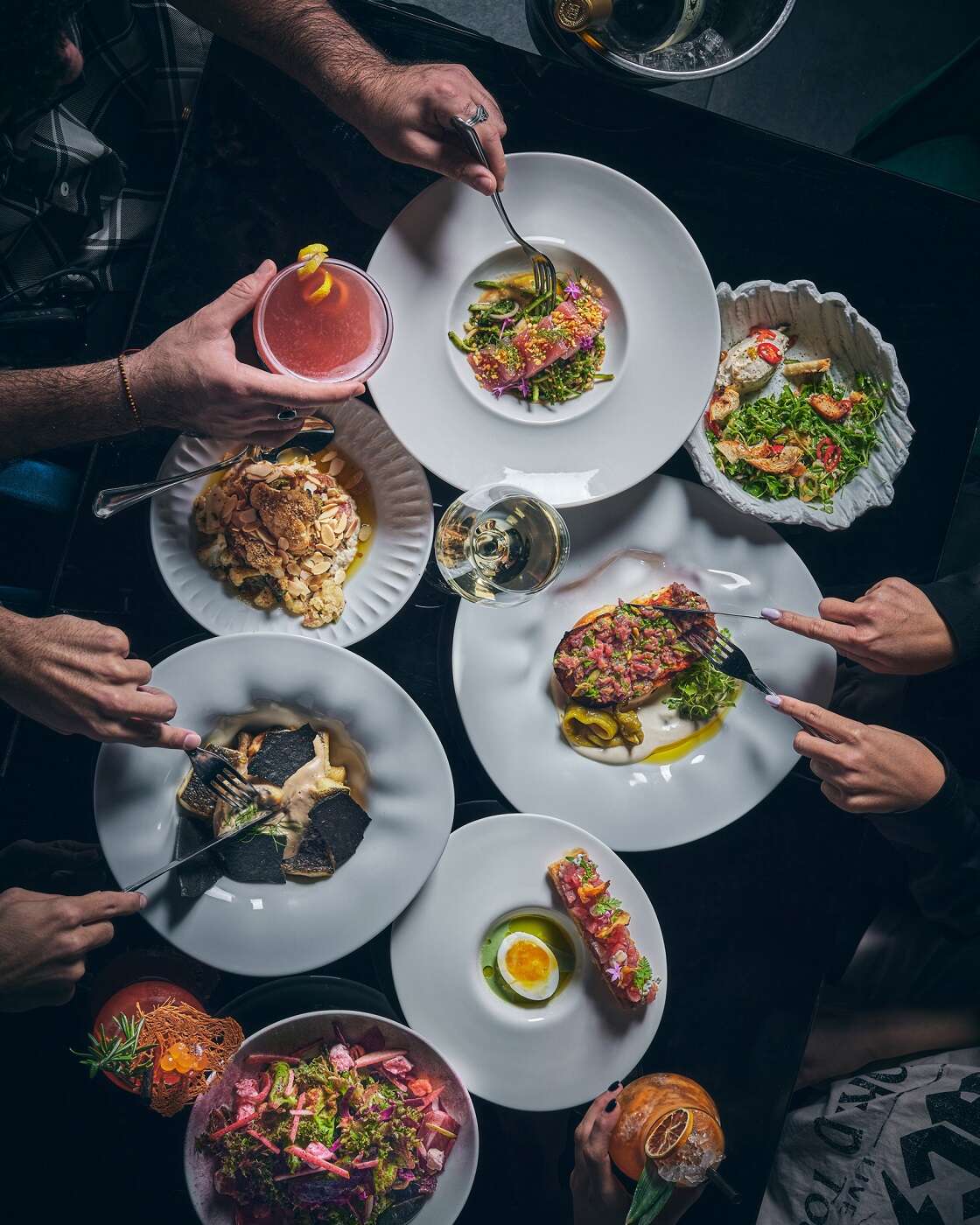 תפתחו פנקסים: טרטר טונה (קרקר פשתן, טונה אדומה, עגבניות חלוטות, איולי שורש חזרת, סלט שומר ואבוקדו וקראנץ' אורז קלוי – 74 שקלים); עגבניית טלה (קרפצ'יו של עגבניות צלויות, כדורי טרטר טלה, טחינת שקדים, גלדים של בצל שאלוט וסקורדיליה, צנוברים מקורמלים במייפל וטוויל לחם תחרה – 78 שקלים); כבד אווז (פטיסייר פירות יער, בריוש צרוב וקולי סחלב עם שברי קוקוס ונענע – 128 שקלים); פילה לוקוס ים-תיכוני בקראסט שום ודבש (רביולי במילוי קולרבי צלוי, עגבניות קלויות, קרם ארטישוק ירושלמי, ויניגרט זרעי עגבניות וצ'יפס עלי גפן עם שבבי זיתי טאסוס בריח אניס – 152 שקלים); וצלעות טלה (אמפנאדס בשר וגרגרי חומוס על קרם ארטישוק ירושלמי ודמי גלאס בצלי פנינה – 239 שקלים).