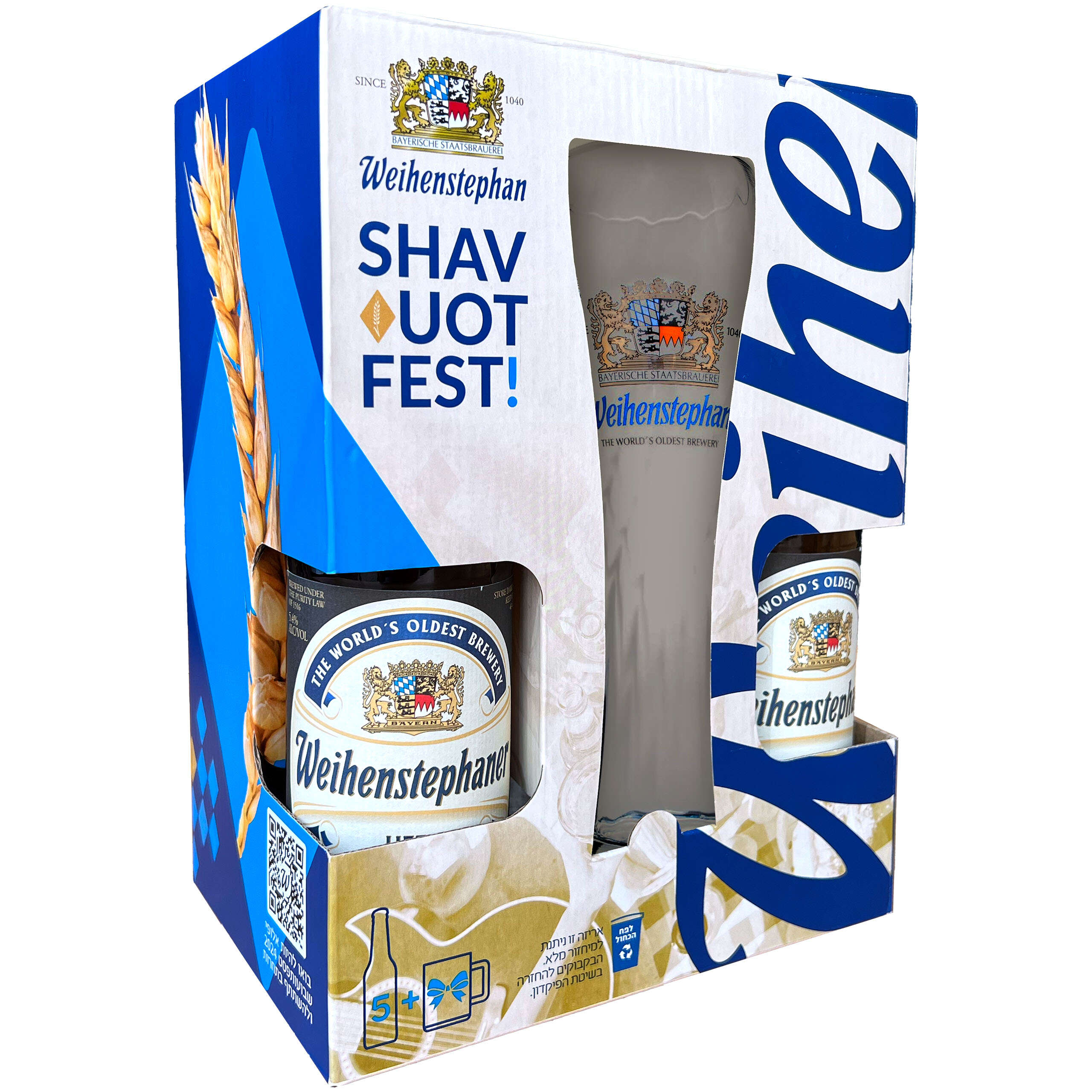 שבועות זה קציר, קציר זה חיטה, חיטה זה בירה, ובירה, במקרה הזה, הוא מארז "שבועות-פסט" של ויינשטפן הגרמנית – המבשלה הוותיקה ביותר בעולם. המארז מוצע במיוחד לכבוד החג וכולל חמישה בקבוקי 330 מ"ל לצד כוס ממותגת. לא תרימו?