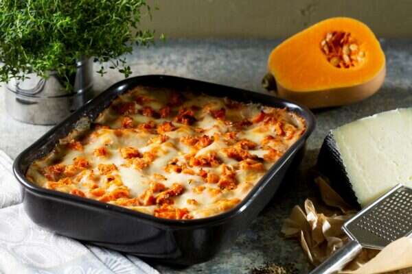 בתחתית התבנית מורחים 3-4 כפות מרוטב הבשמל ומניחים למעליהן 3 דפי לזניה