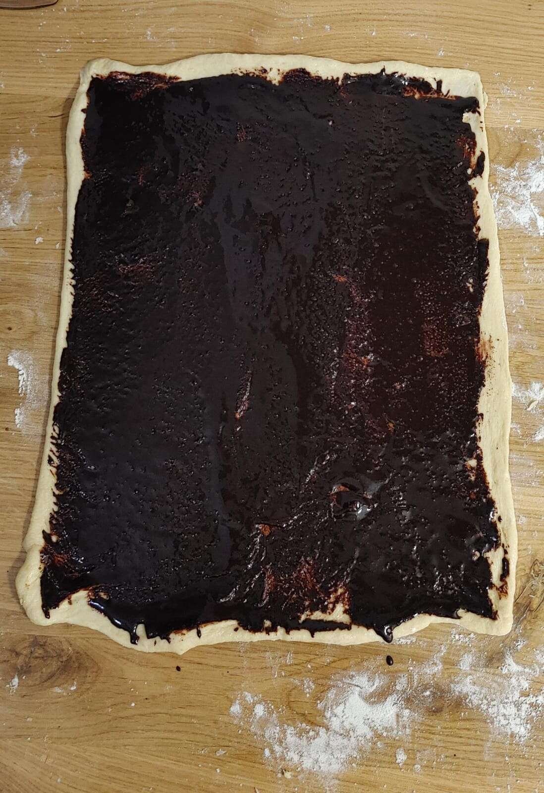 מה צריך לקחת בחשבון: עוגת שמרים דורשת סבלנות. הבצק דורש מנוחה, התפחה, מילוי, עיצוב הצורה, ושוב התפחה. עד שתאכלו את עוגת השמרים המיוחלת יעברו כמה שעות טובות, אבל ההמתנה שווה את זה. נוסף על כך, קחו בחשבון משטח עבודה פנוי ונקי שתוכלו לרדד עליו את הבצק בקלות – ולכלוך. המון לכלוך. מילוי השוקולד דביק ונמרח לנו בכל הכיוונים, אבל אל דאגה – ניקוי קל וזה עובר.