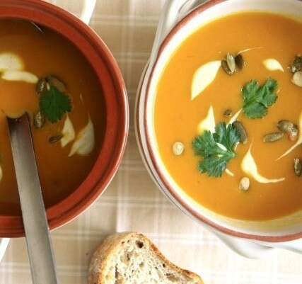 1. מחממים שן זית בסיר גדול ומזהיבים את הכרישה והגזר, מוסיפים שיני שום וקוביות דלעת.