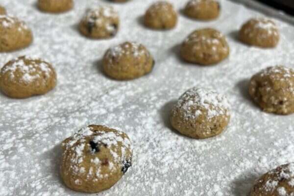 מניחים את כדורי הבצק על תבנית מרופדת בנייר אפייה ואופים למשך 20 דקות.