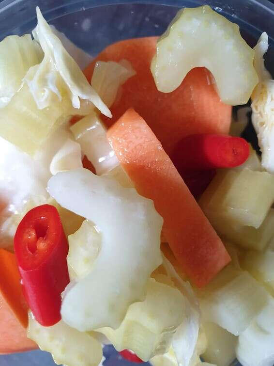 "המתכון מבוסס על זכרון הילדות הכי חזק שלי", מספרת רוית שני לוי. "סבתא סאלי שלי האהובה ז"ל עומדת במטבח עם סינר פרחוני ומחמיצה שלל ירקות צבעוניים. בעקבותיה התחלתי להתעסק עם עולם החמוצים לפני כשנתיים. לפניכם אחד המתכונים שלה שהצלחתי לשחזר- מושלם למי שרוצה להכין חמוצים מהירים ואין לו סבלנות לחכות".