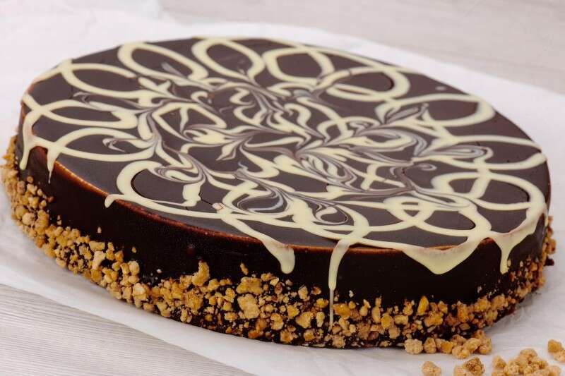 טורט קרמו שוקולד–-קריספ פרלינה שוקולד,ביסקוויט ומוס שוקולד מריר, קרמו שוקולד נוצ'ולה ומקרונס-קוטר 18 139 ₪ /פס 65 ₪