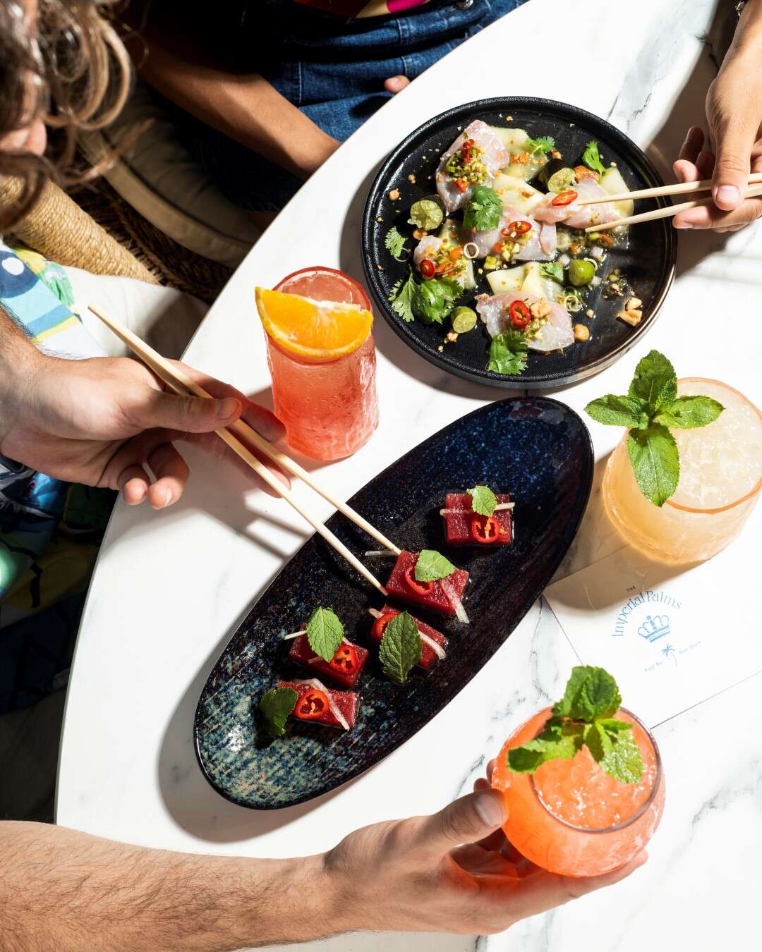 את החוויה מומלץ לעטוף בטעימה של קוקטייל אחד לפחות מבית האימפריאל. הקוקטיילים מתכתבים עם המטבח התאילנדי של נדב ודניאל, ומשלימים את המסע למדינה שכל כך הרבה תיירים ישראלים אוהבים. הם מוגשים בכוסות קוקטייל מרהיבות ביופיין ובייחודן. בין הקוקטיילים, אפשר ליהנות, למשל, מכוס של "מאי תאי" – רום ג'מייקני, קואנטרו, סירופ שקדים ביתי וליים (58 שקלים).