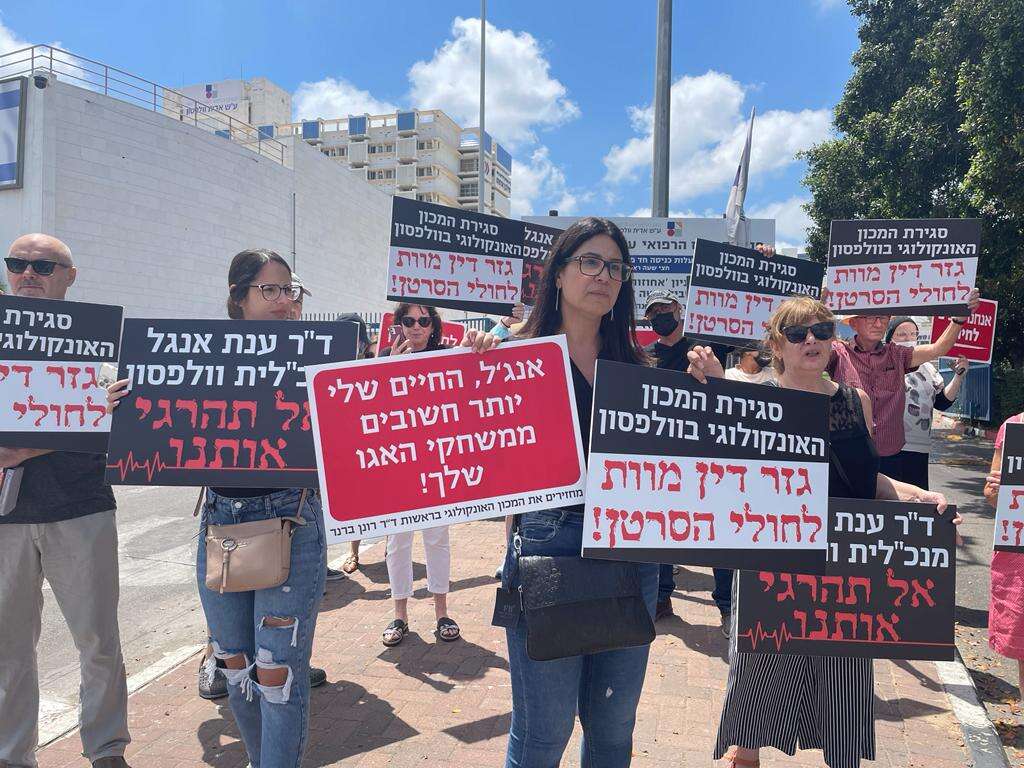 זעקת חולי הסרטן בבית החולים וולפסון: חולי המכון האונקולוגי בביה"ח וולפסון ובני משפחותיהם הפגינו הבוקר בכניסה הראשית לבית החולים וולפסון בחולון. המפגינים מחו נגד הכוונה לסגור את המכון האונקולוגי בבית החולים, תוך שהם מניפים שלטים בהם נכתב "סגירת המכון האונקולוגי בוולפסון - גזר דין מוות למטופלים!".