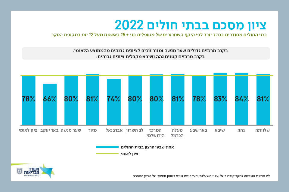 עוד עולה מהנתונים כי 90% מהמטופלים מרוצים מהיחס המכבד שקיבלו, 88% מדווחים כי הרגישו מוגנים ובטוחים במהלך האשפוז, 81% מהמטופלים מדווחים על קבלת מענה ללא מאמץ ו-84% סבורים כי יכלו לפנות למטפל העיקרי שלהם בכל שאלה.