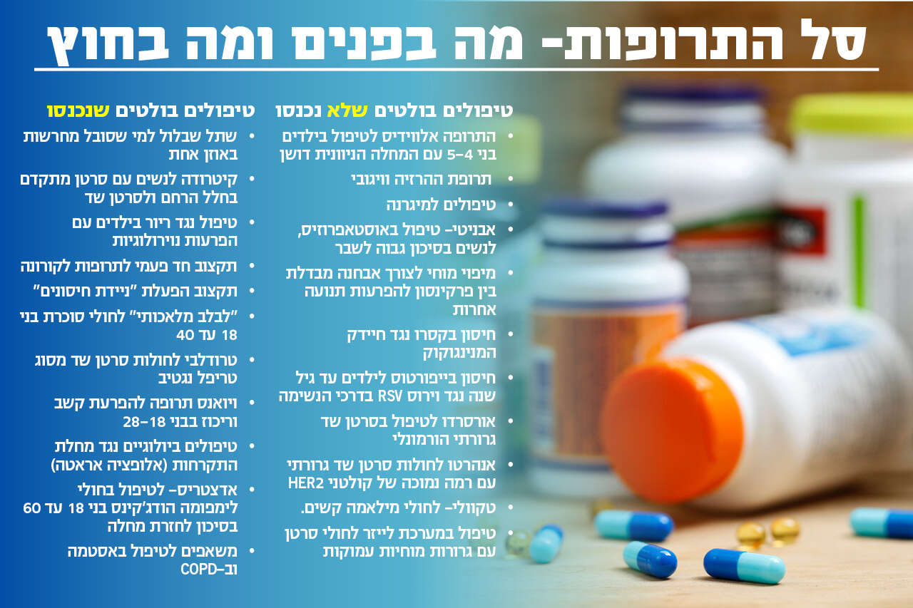 מימון תרופות להפרעת קשב וריכוז למבוגרים, תרופה לטיפול בילדים שסובלים מגמדות, לבלב מלאכותי לחולי סוכרת מבוגרים, טיפולים חדשים ויעילים לסרטן שד - אלו חלק מהתרופות החדשות שיינתנו בקרוב לחולים ללא תשלום במסגרת התוספת לסל התרופות.