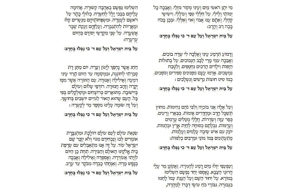 קהילות יהודיות ברחבי העולם יקבלו השנה קינה מיוחדת לתשעה באב, המתארת את אירועי 7 באוקטובר והמלחמה בעזה.