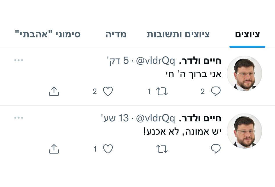 בחשבון "חיים ולדר" שנושא גם תמונתו של הסופר, נטען כי "אני ברוך ה' חי". כעשר דקות מאוחר יותר ציטט הפרופיל המזויף את הפסוק "לא אמות כי אחיה".