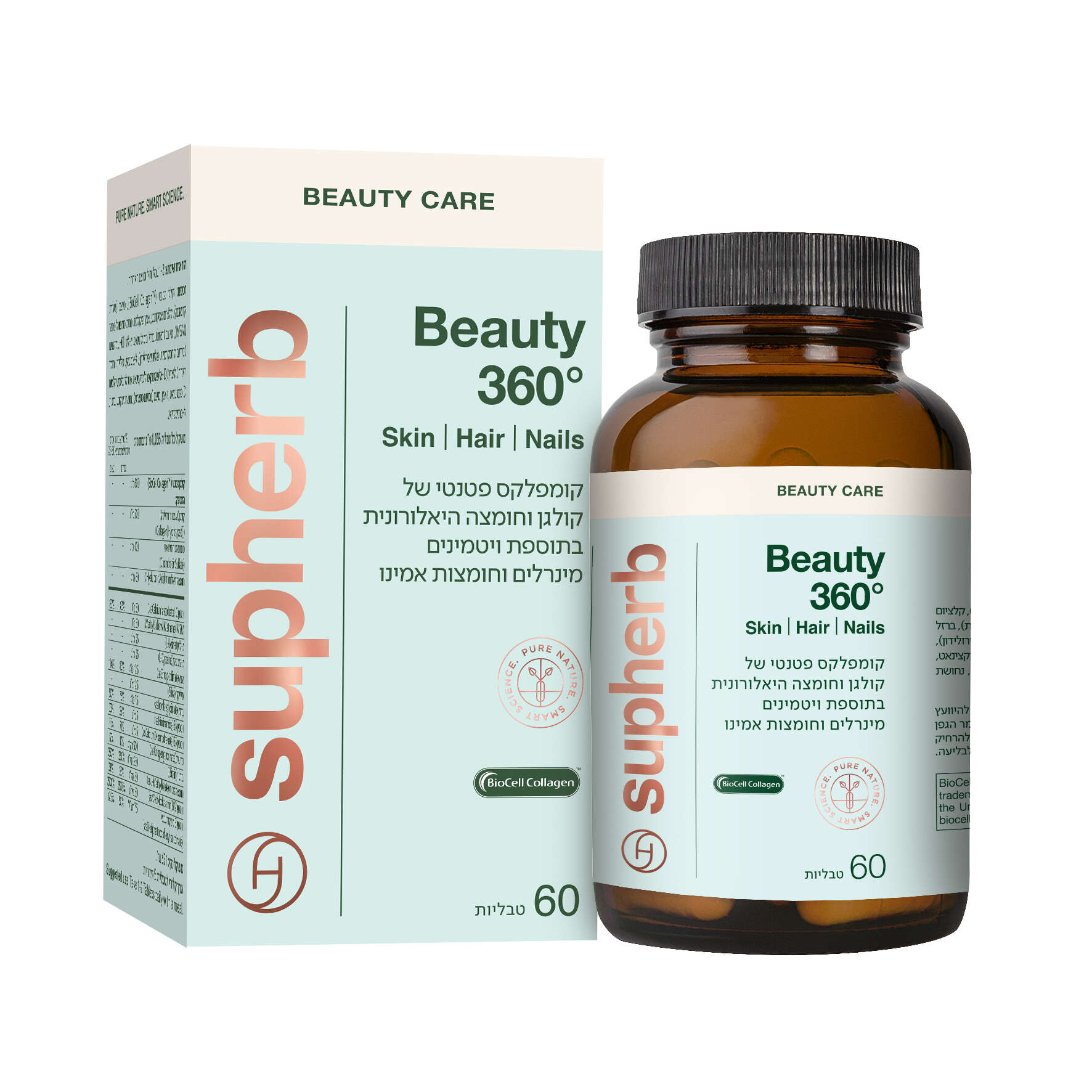 תוסף ביוטי 360 החדש של חברת סופהרב, מכיל בנוסף לוויטמינים ולמינרלים החשובים לטיפוח השיער, גם קולגן, חומצה היאלורונית, ביוטין, ,MSM וחומצות אמינו, זאת כדי שלא רק השיער יתחזק אלא גם עור הפנים ייראה זוהר וחיוני.