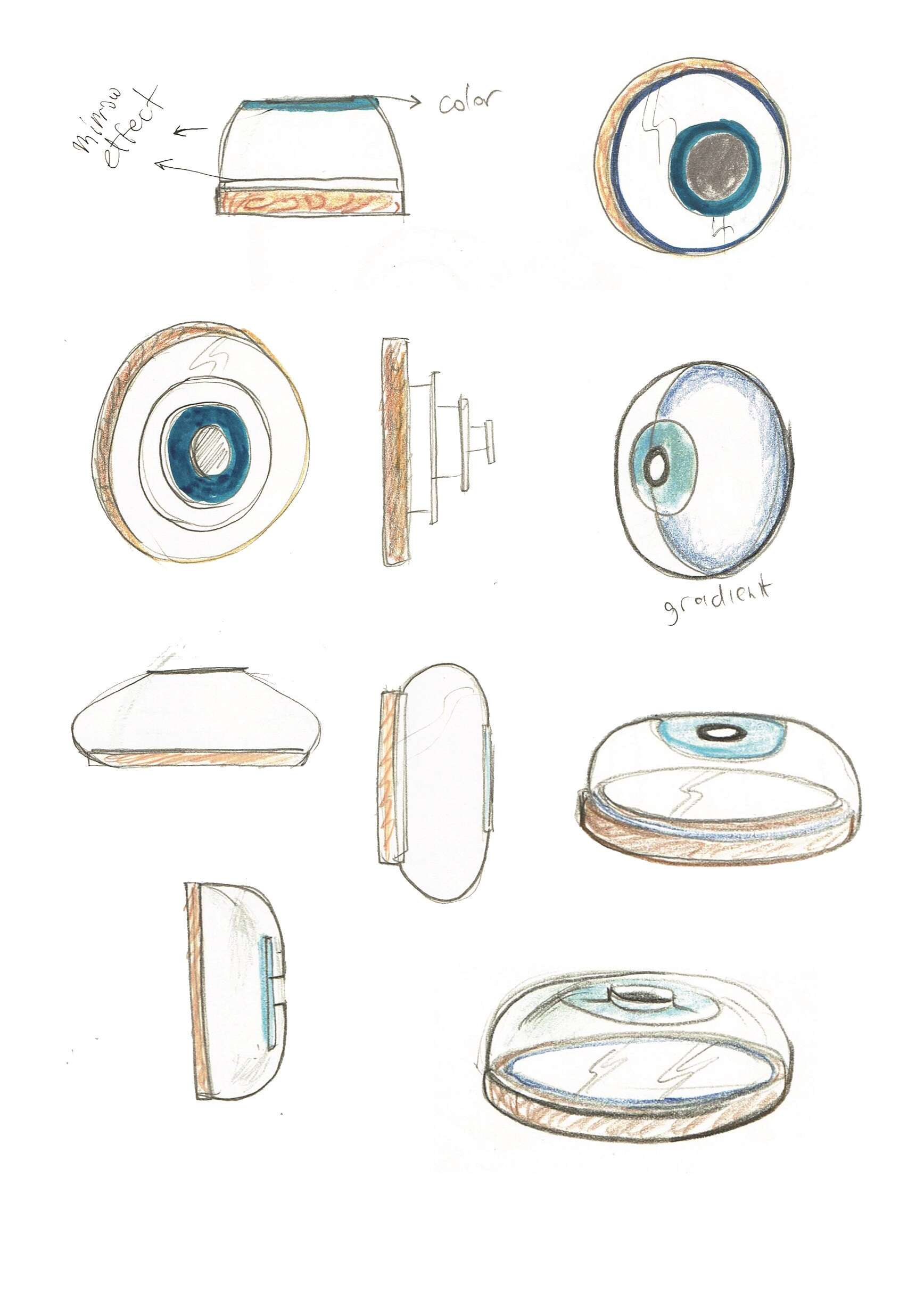 סקיצות מתוך תהליך הפיתוח, כדור זכוכית נגד עין הרע, מבית סטודיו דפי רייס דורון
