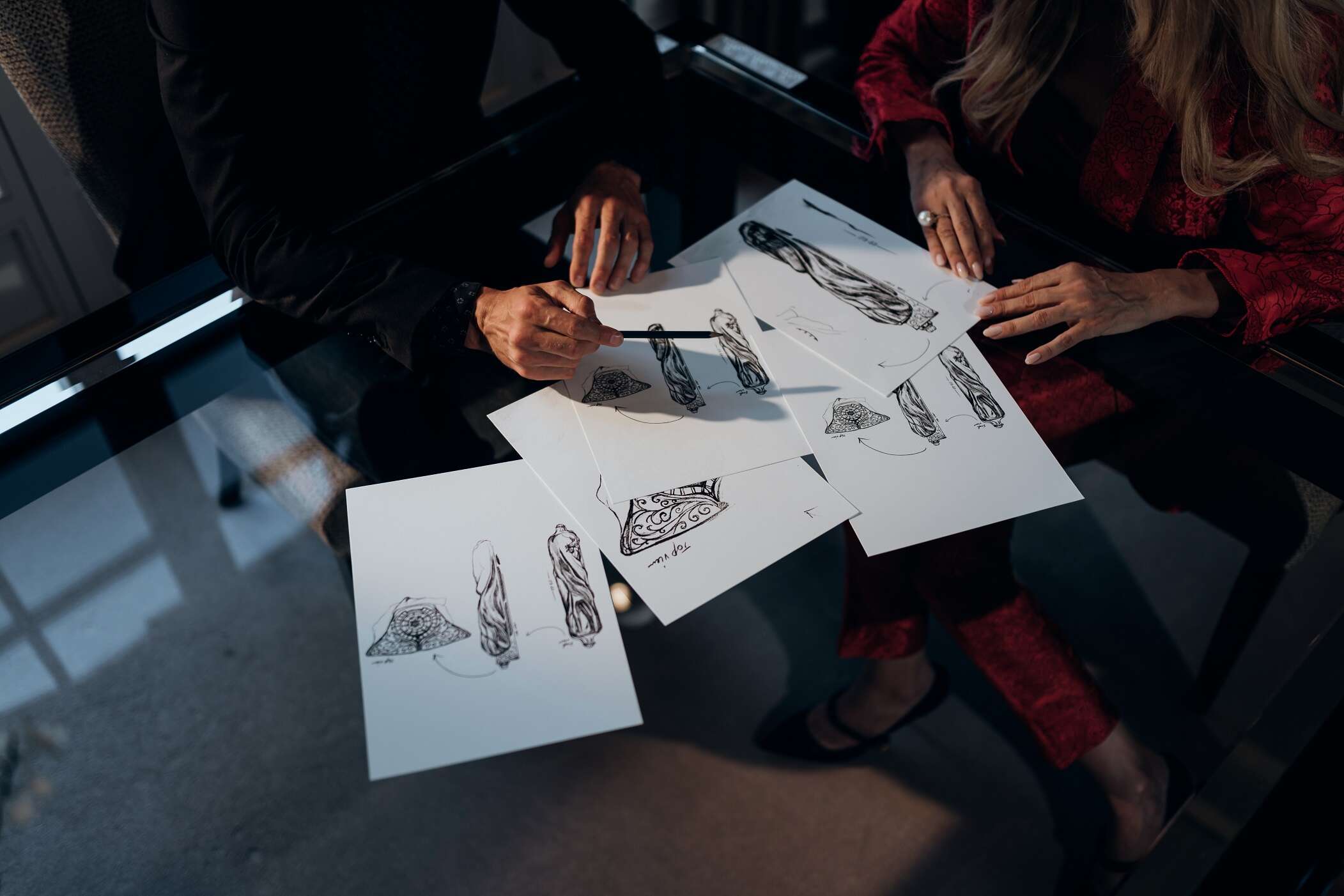השרטוטים בעת פיתוח המזוזה עבור בית העיצוב לליק, צילום: Quentin Valleye- Cyclon’valleye Production