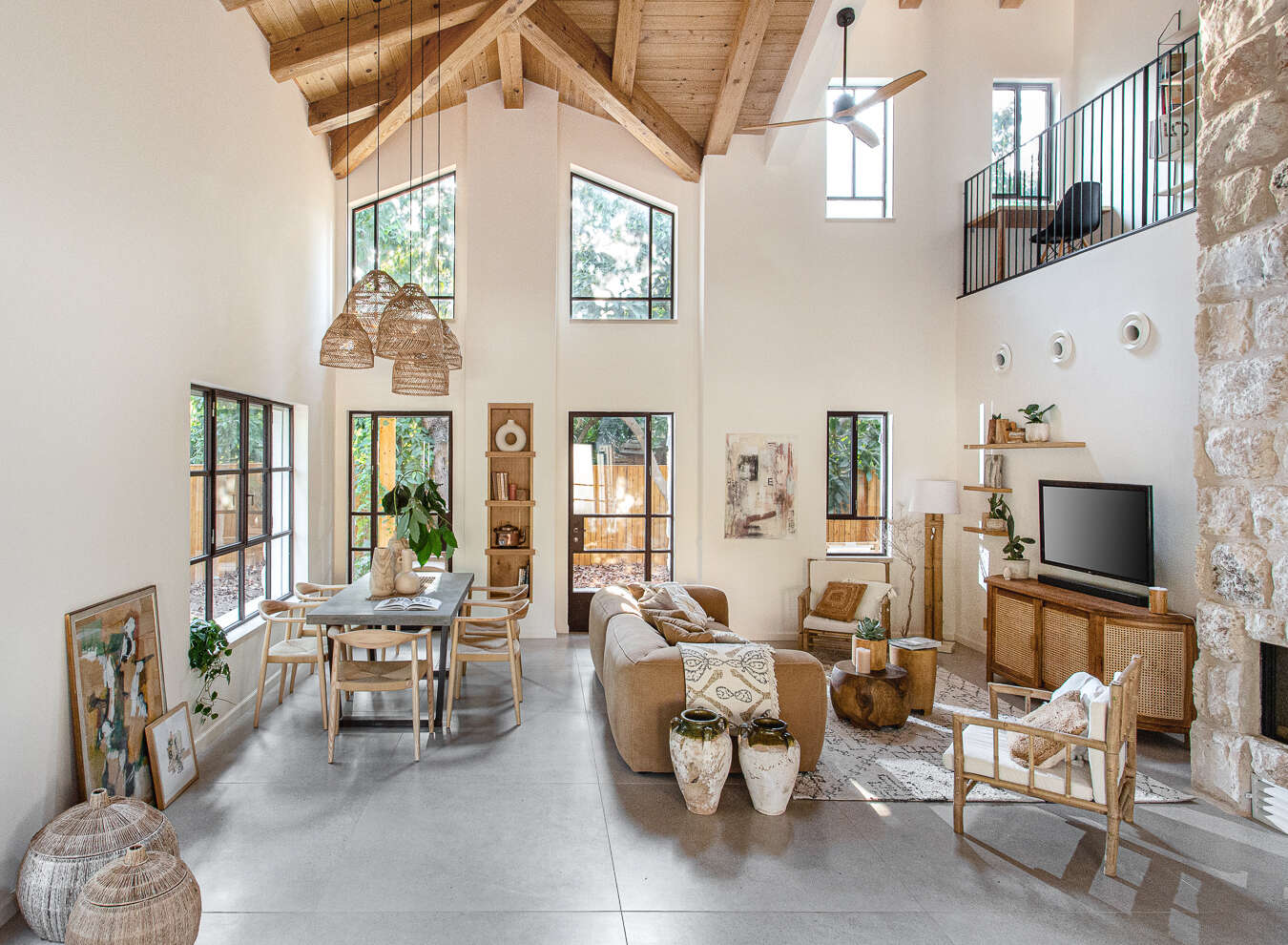 איך הופכים את החלל לכזה: אין חובה להשתמש בכל מאפייני הסגנון כדי לקבל את התוצאה. גם אם יש לכם גג שטוח או אם בחרתם לוותר על שימוש באבן, תוכלו לזכות במראה הנחשק. הטקסטיל הוא האלמנט הנגיש ביותר שבאמצעותו ניתן ליצור שינוי מהיר. וילונות מבד בהיר שמאפשר מעבר אור - ניתן לבחור בד בחנות בדים, ולתת לתופר בצירוף מידות החלון, או לקנות אחד מוכן או בהתאמה אישית. בנוסף, גופי תאורה עומדים יכולים לספק פתרון קל ומהיר. באופן דומה ניתן לבחור בשטיח קלוע במראה קש טבעי. שטיח כזה יהיה לרוב קל לנשיאה, כך שאין צורך להמתין להובלה מיוחדת. כדי לייצר שינוי מהיר תצטרכו 1-2 גופי תאורה מטאליים בשתי פינות של הסלון, שטיח במראה טבעי ווילונות. אם תרצו להשקיע קצת יותר, ניתן לבחור ספה וכורסאות בגוון בהיר במראה נונשלנטי, אך גם האבזור המשלים לבדו יעשה עבודה טובה.