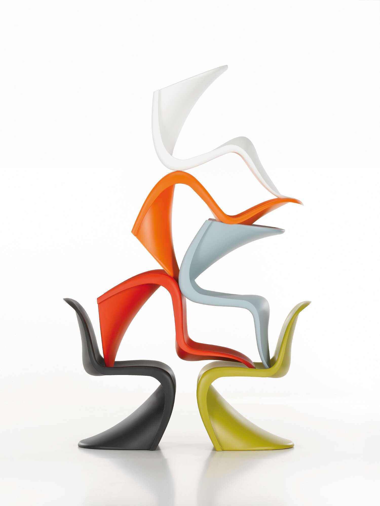 ערימת כיסאות בהשראת פירמידת לוליינים, כיסא פנטון המקורי, הביטאט, צילום: Vitra