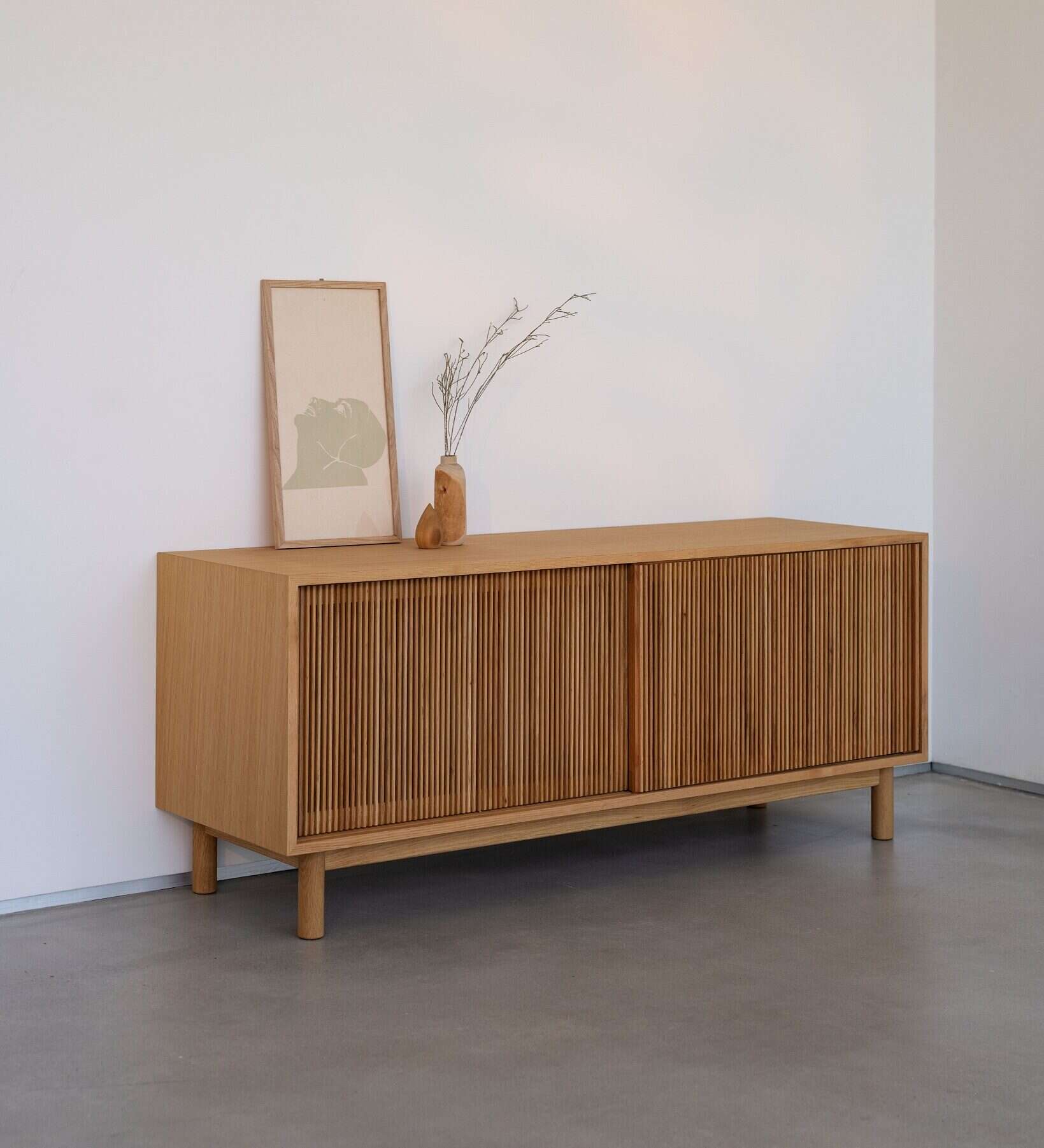 ארונית עץ עם חזית סרגלי עץ, בעלות מלאכה / צילום: טל ברושל