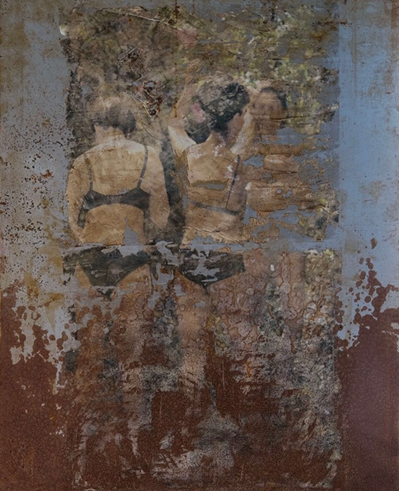 טכניקה ייחודית של התכה ושימוש בחומצות, עבודה של תמי ענבר, בביתה של יעל פוליאקוב // צילום: יעל פוליאקוב