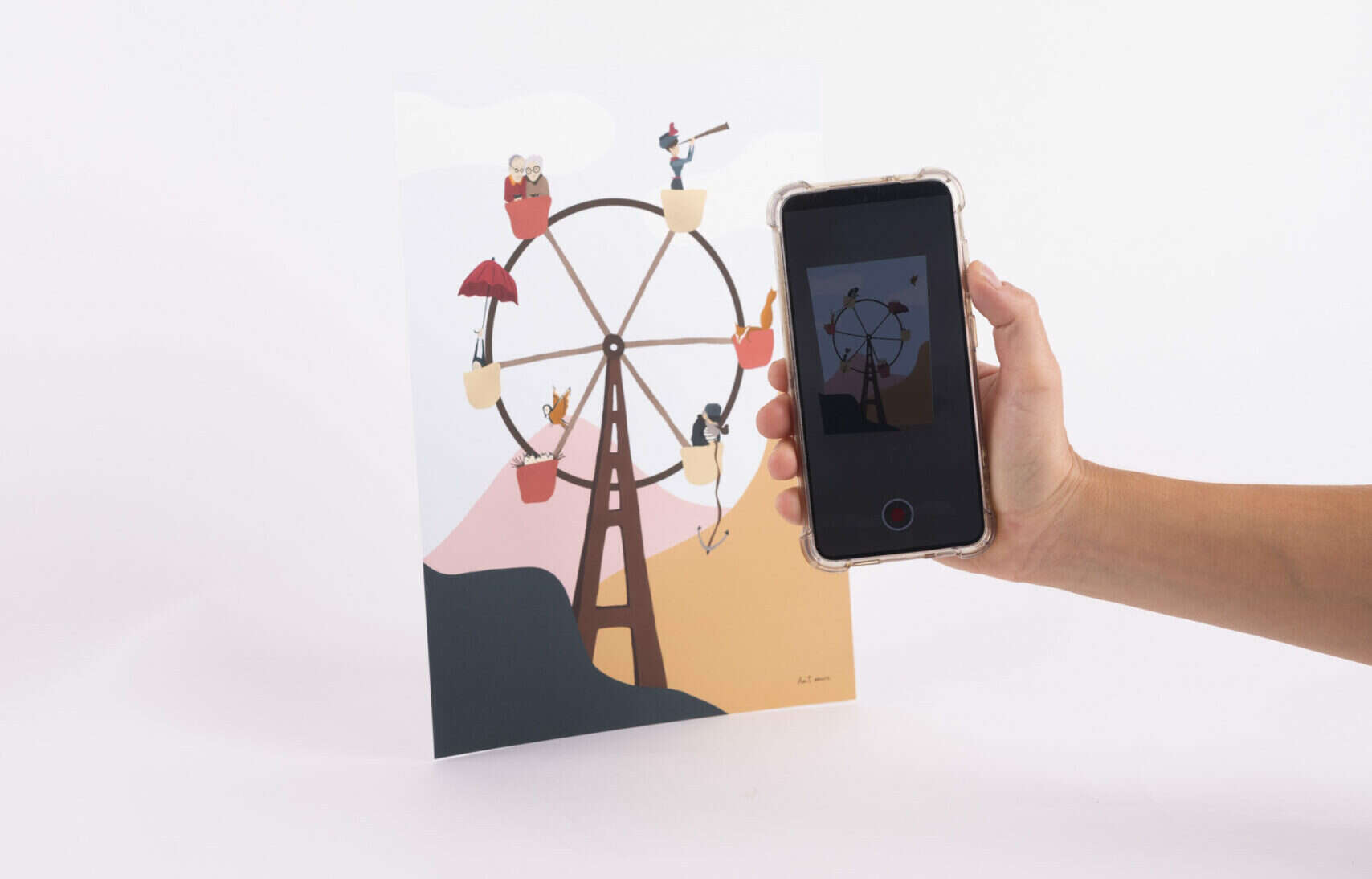 כרטיס ברכה שמתעורר לחיים כשמצמידים אליו את הסמארטפון, איור עמית מעוז, 45 שקל, באדיבות טרמינל העיצוב בת ים