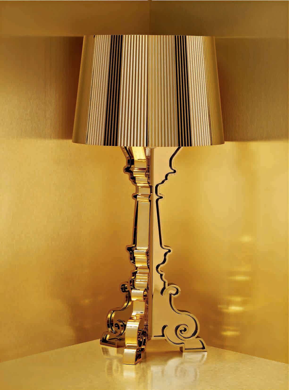 מנורה שולחנית מפלסטיק דמוי מתכת בציפוי מוזהב, הביטאט, kartell