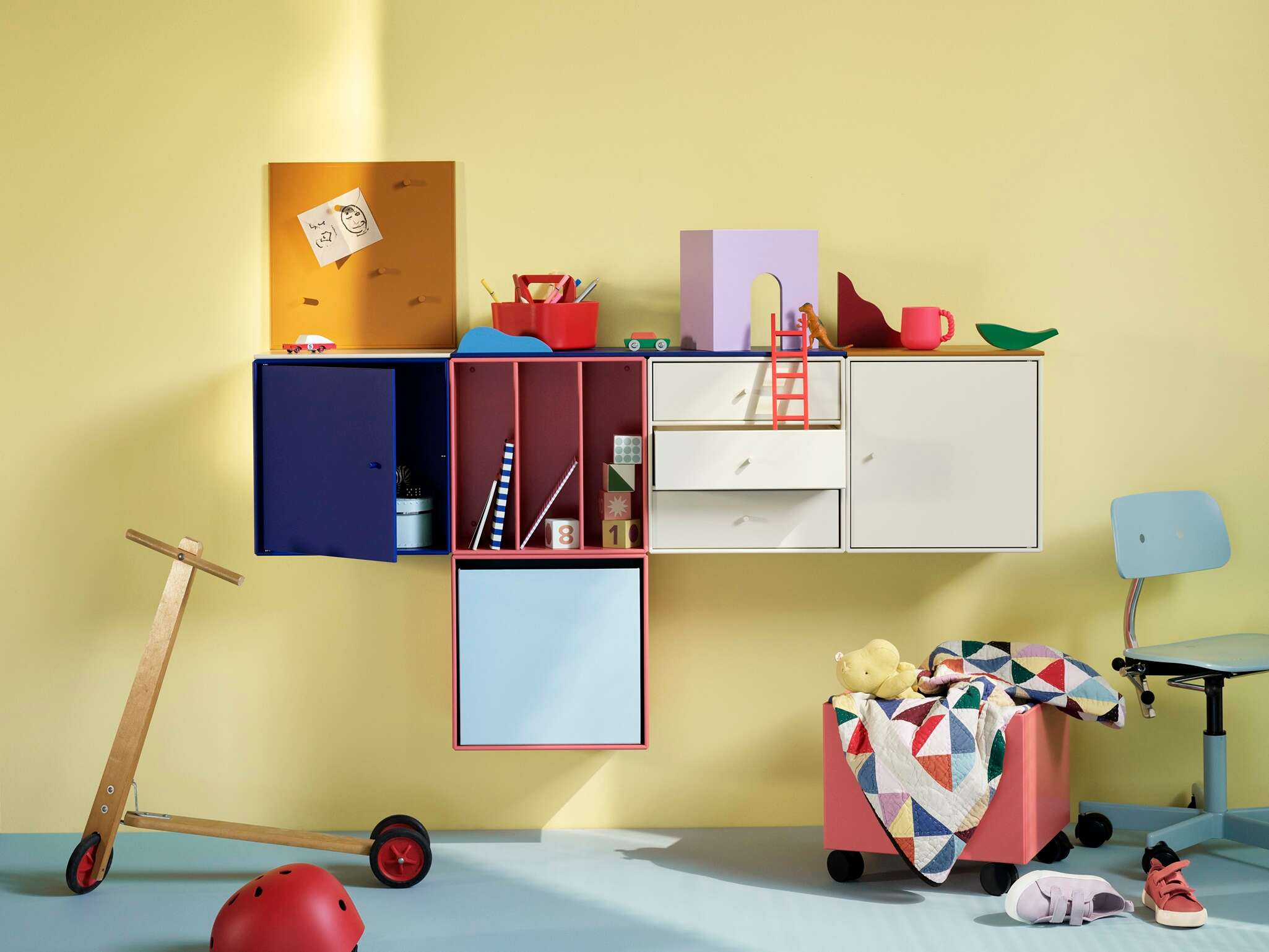 ישנן קוביות אחסון שאפשר למקם על הרצפה. קוביות רשת יעניקו מראה מאווורר יותר, ולרוב בחדרי ילדים המרחב מצומצם, בעיקר לאור העובדה שהחדר משמש גם לישנה וגם לאירוח ועבודה. הרעיון המנחה הוא שלכל דבר אמור להיות מקום להתאחסן בו, כשהוא לא בשימוש.
