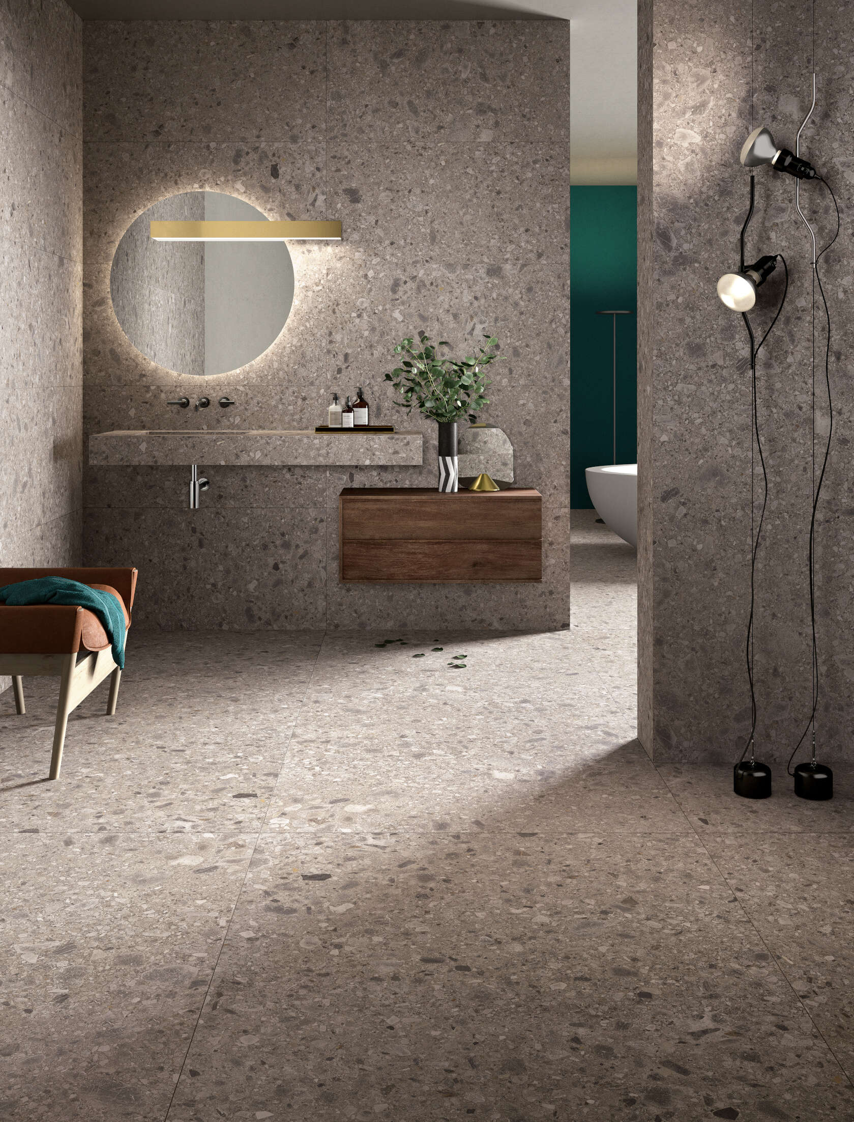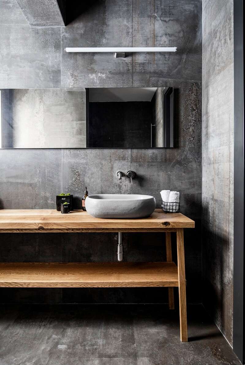 חלל רחצה מרוצף ומחופה באותו האריח, תכנון עדי הנפלד / צילום: סטודיו הנפלד
