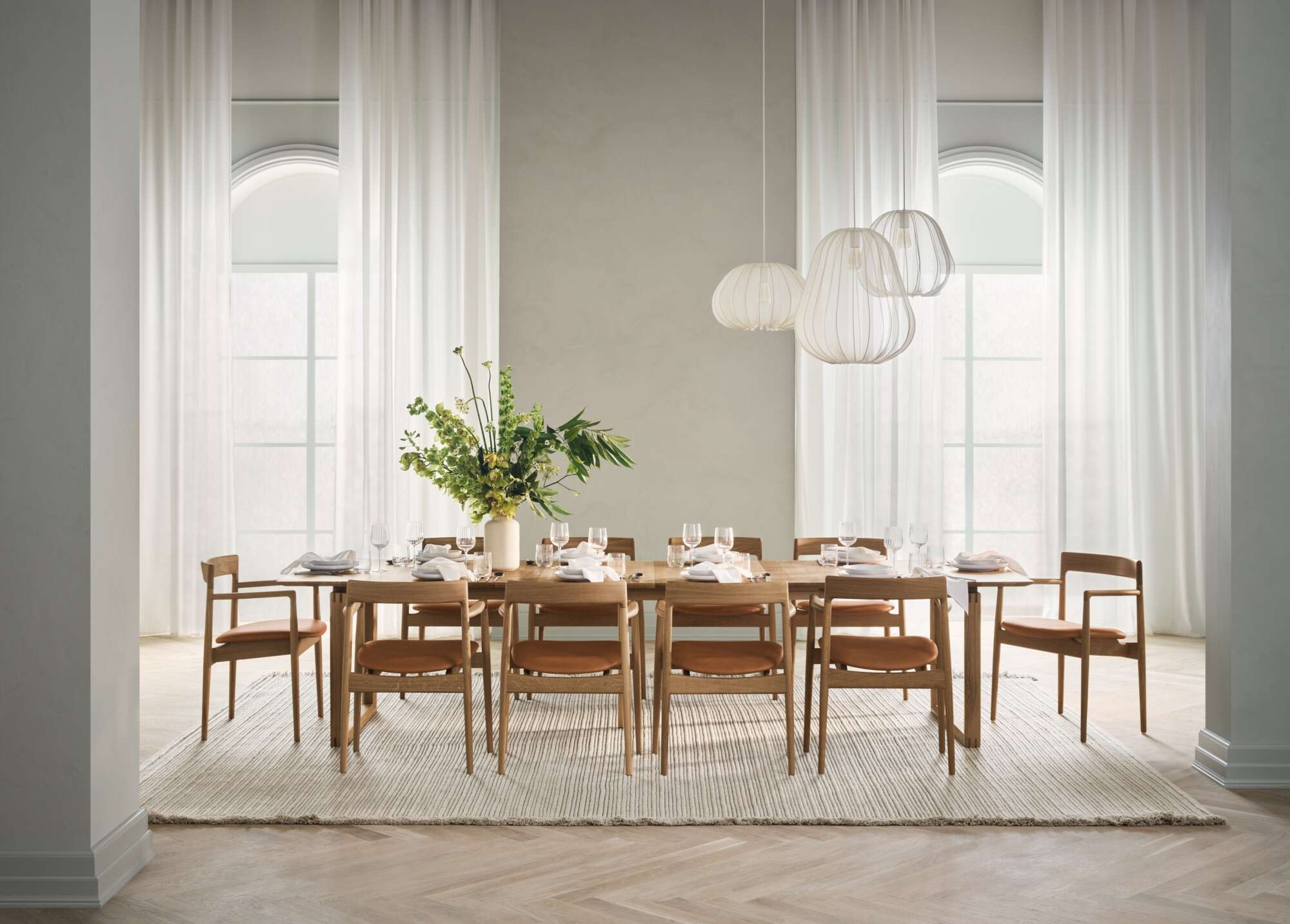 הסגנון הג'פנדי כבר נסקר כאן במדור בהרחבה - יפני משולב עם סקנדינבי. סגנון שמטיף למראה הטבעי, מציג פלטה מונוכרומטית בבסיסה וחומרים טבעיים, קרובים ככל הניתן למצבם הגולמי - שימוש במוטיבים יפנים מינימליסטים ומעודנים, ודגש על יצירת חמימות ביתית. הלך הרוח הג'פנדי בא ליד ביטוי גם בפינות האוכל- פלטות עץ מחורצות, כיסאות מחומרים טבעיים, ושילוב של אביזרים משלימים כמו גופי תאורה ואגרטלים תואמי סגנון.