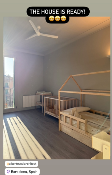 שעות לפני הפוסט של אלברט, אסי שיתף את מעל למילון עוקביו באינסטגרם בסדרת סרטונים קצרה שתיעדה את הבית החדש של המשפחה בברצלונה וכללה סיור קצר במטבח, חדר השינה של הילדים, הסלון והמבואה ותמונה של אימא שלו מלכה לצד אלברט במטבח החדש.
