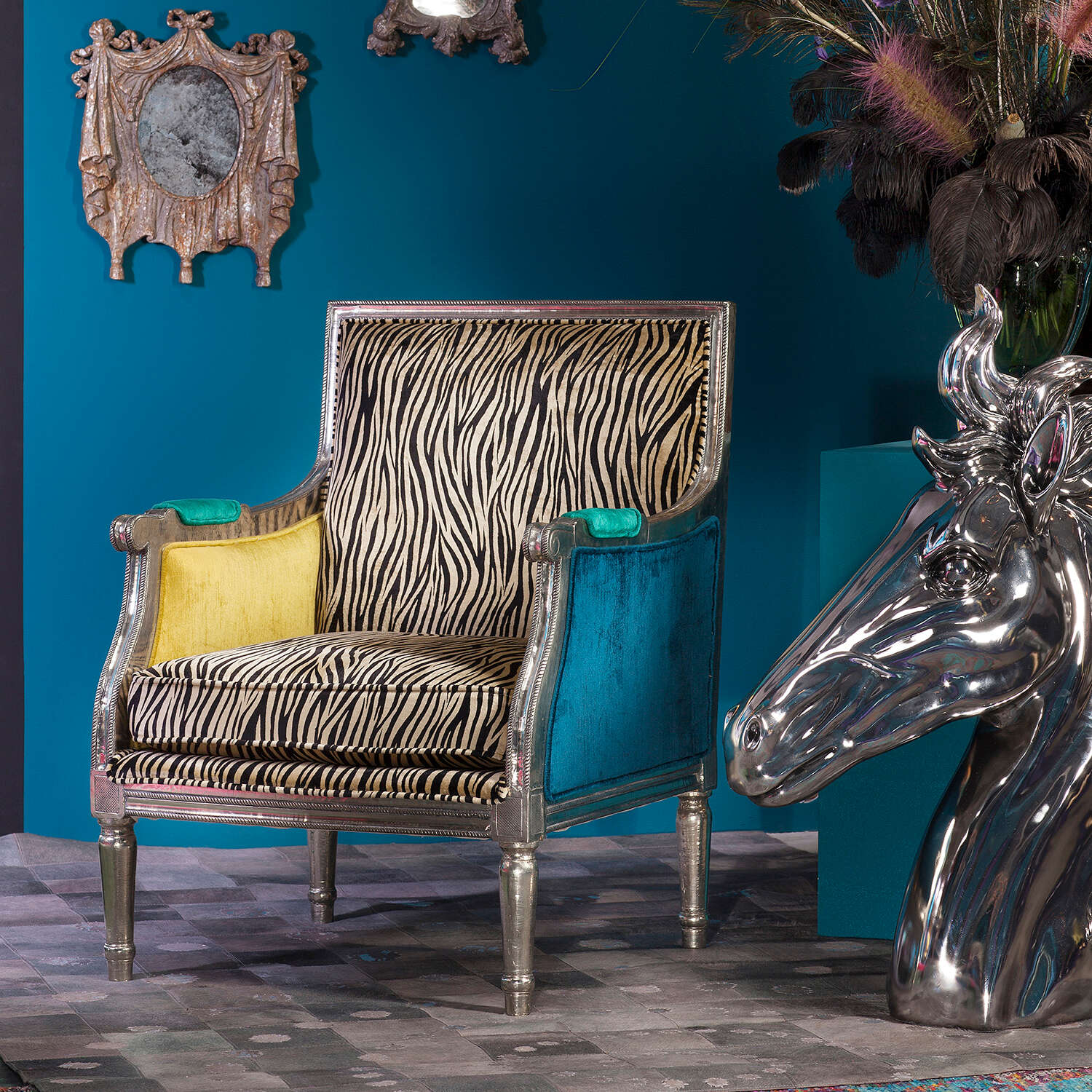 כורסא עשירה בפיתוחים בגוון פטרול, טולמנ'ס דוט. PROUST