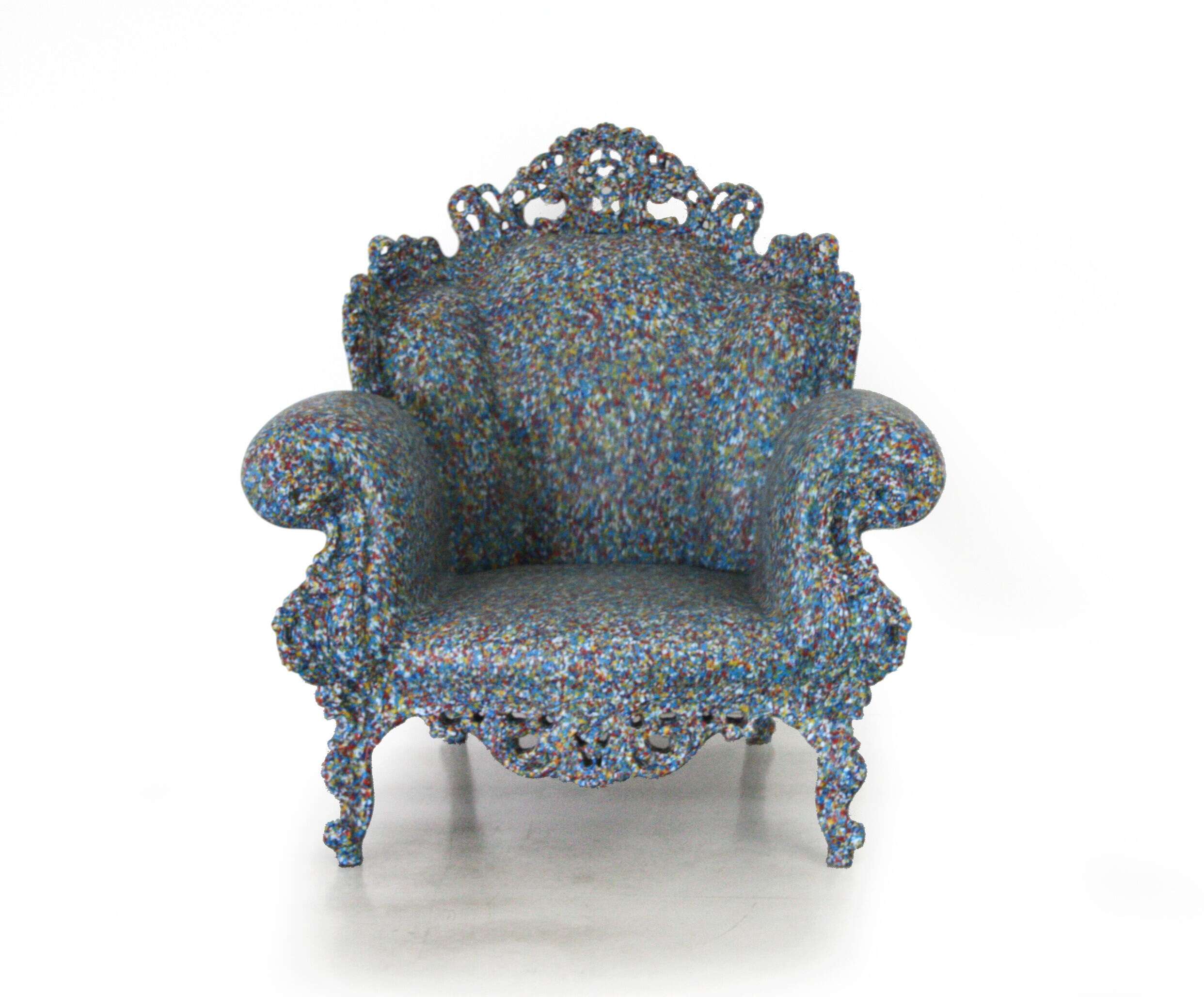כורסה כסופה עם נקודות צבעוניות, טולמנ'ס דוט. PROUST