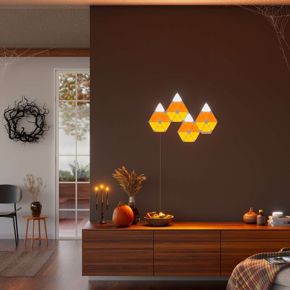 לוחות תאורה חכמים בעיצוב פורניר גרגירי עץ, בהשראת כובעי ליצן, iStore חברת nanoleaf / יח"צ