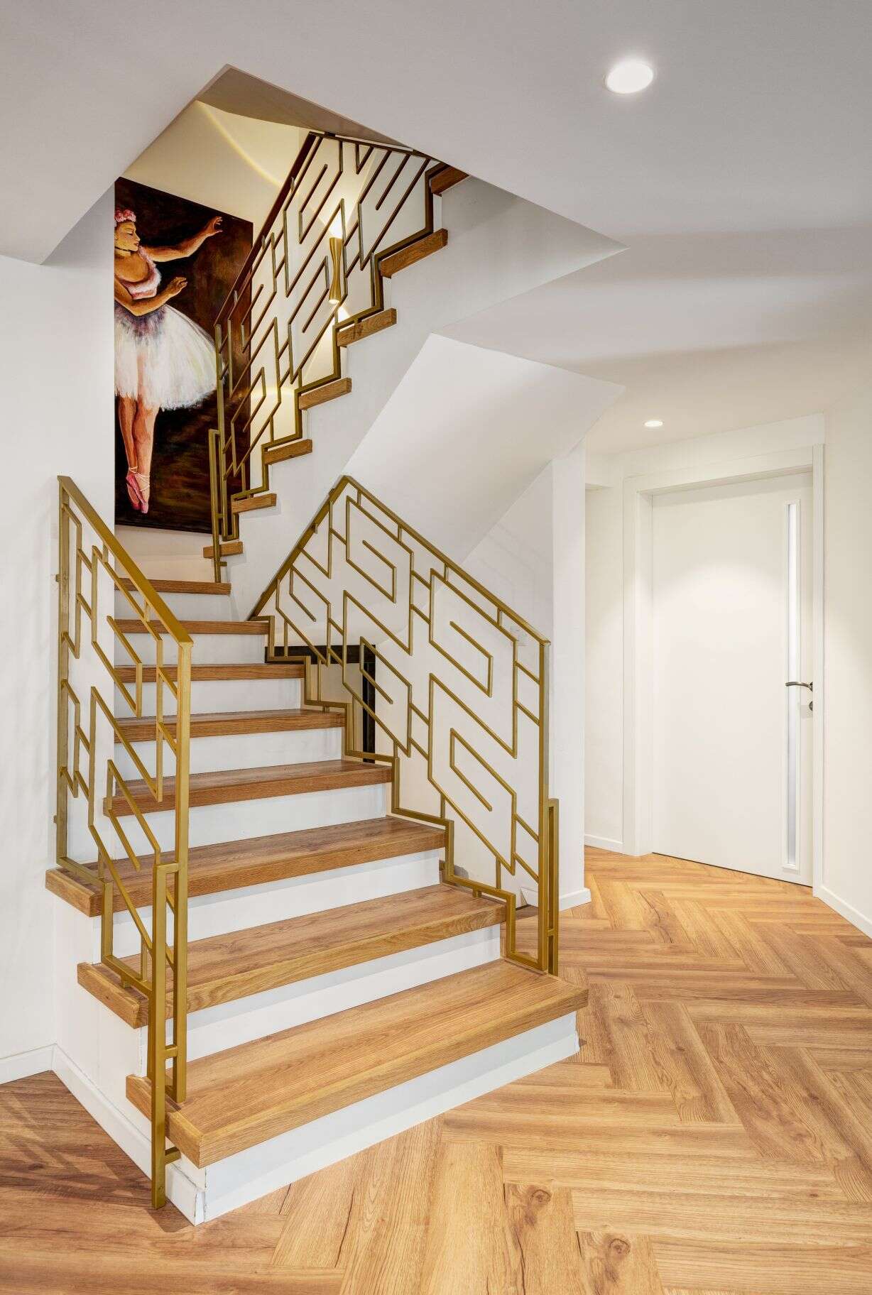 פרקט פישבון בכל החלל מקפיץ עיצובית את הבית וגם מאוד פרקטי וקל לניקוי וכך גם המדרגות.