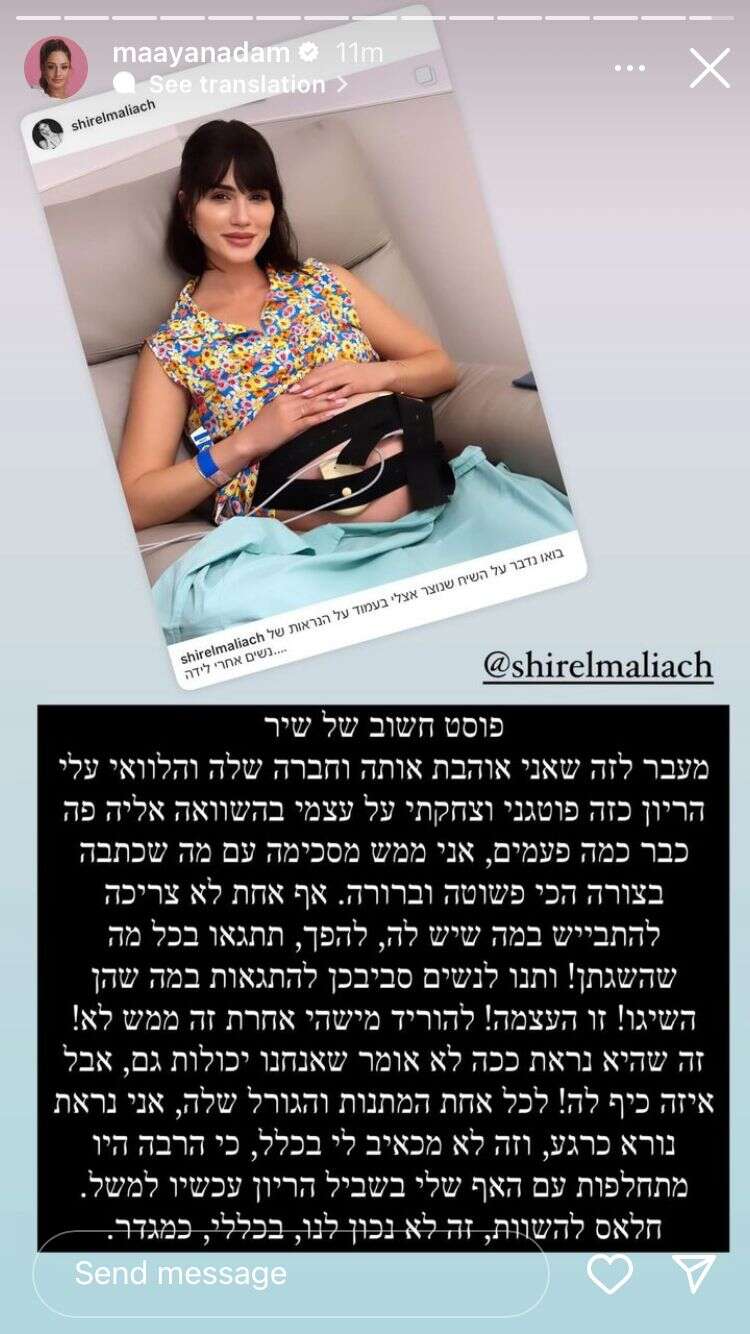 הסטורי של מעיין אדם // צילום מסך מתוך אינסטגרם