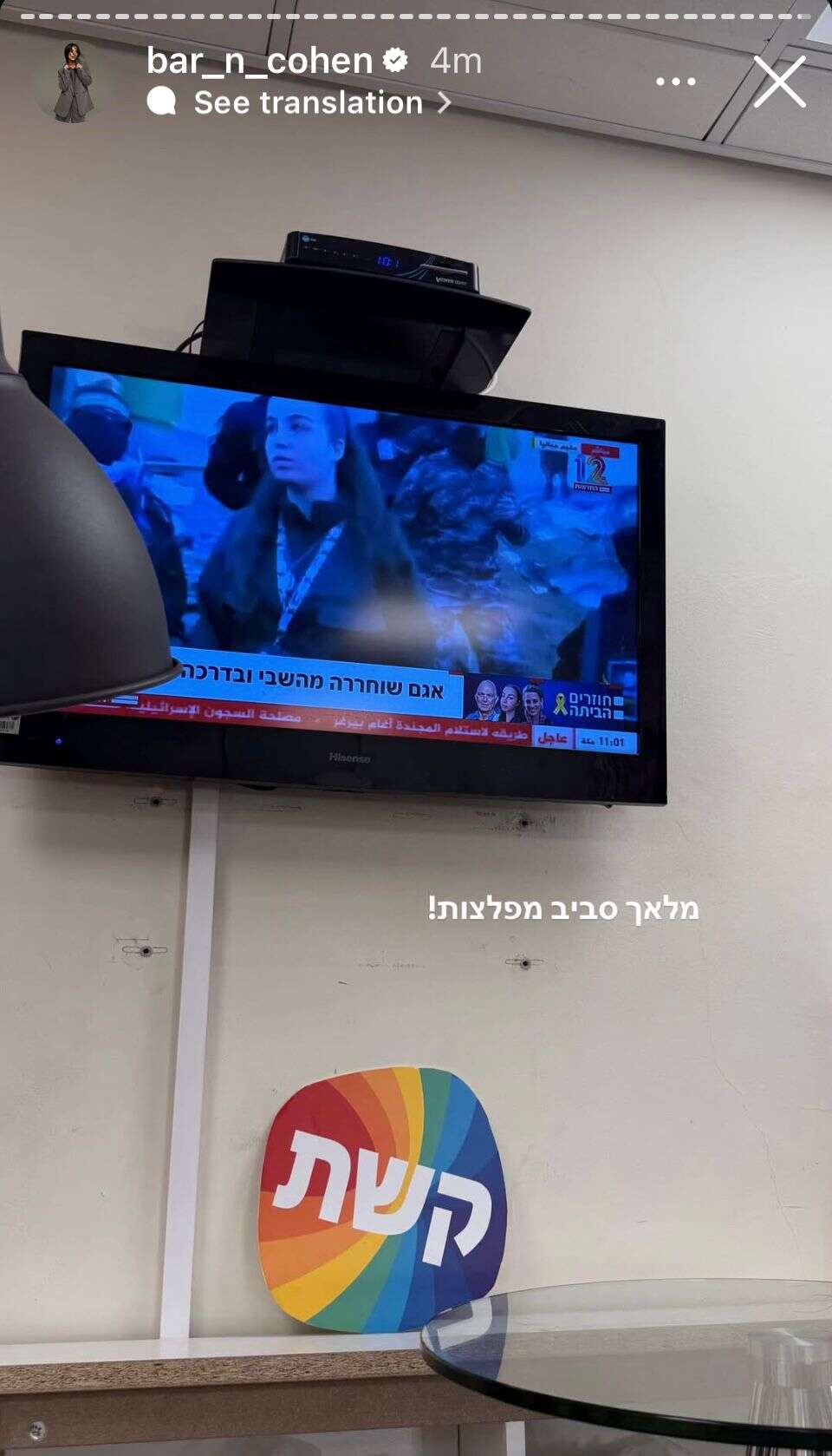 "מלאך סביב מפלצות", כתבה בחריפות יוצאת "האח הגדול" והמשפיענית בר כהן, וצילמה את הטלוויזיה במשרדים של קשת 12.