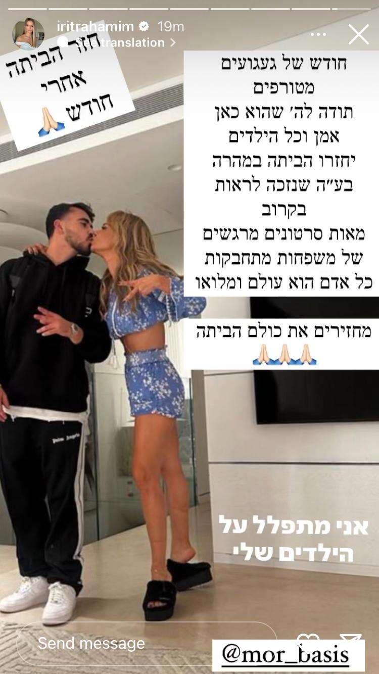 לאחר מכן סיכמה רחמים את המפגש על רקע תמונה משותפת לה ולבנה, וביקשה להזכיר את מי שאין ביכולתם לראות את יקיריהם כעת, משפחות החטופים. "חזר הביתה אחרי חודש. חודש של געגועים מטורפים, תודה לשם שהוא כאן, אמן וכל הילדים יחזרו הביתה במהרה. בעזרת השם שנזכה לראות בקרוב מאות סרטונים מרגשים של משפחות מתחבקות. כל אדם הוא עולם ומלואו. מחזירים את כולם הביתה", הכריזה.