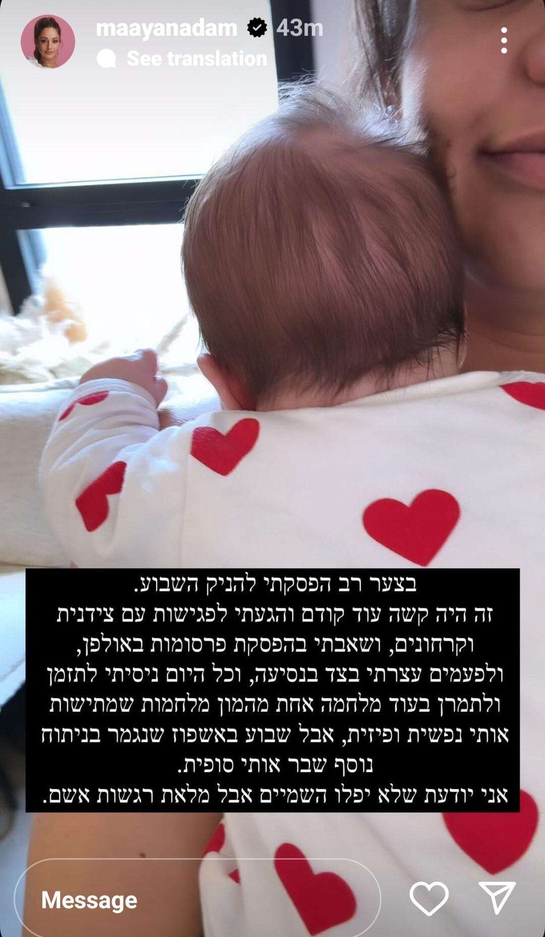 "שבר אותי סופית": הסטורי של מעיין אדם // אינסטגרם