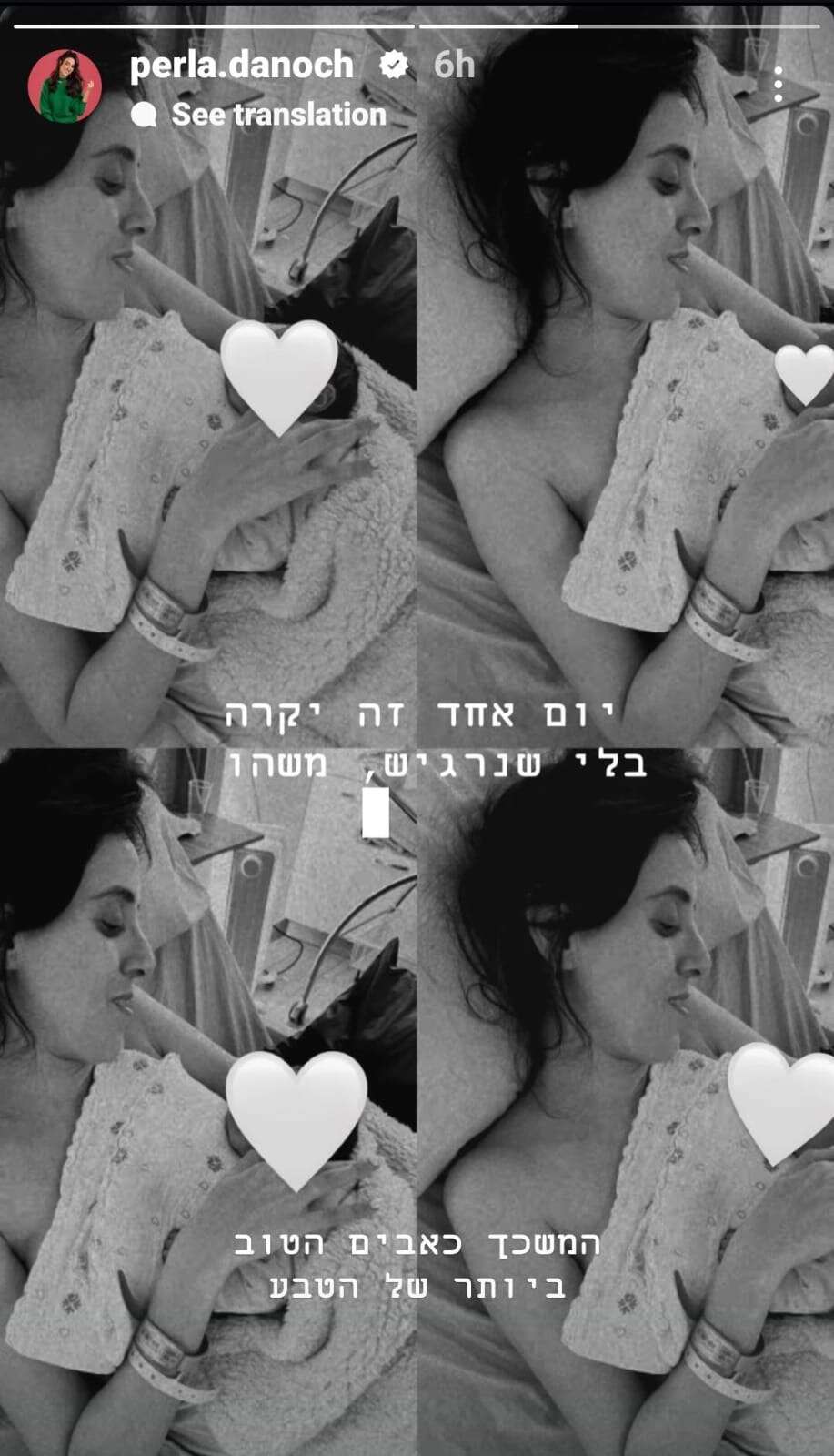 "מי שעוקב אחרי יודע שאני לא מציגה את החיים המושלמים באינסטגרם ואין לי עניין לייצר פיקציה של האימא המושלמת אחרי לידה", כתבה. "זה קשה, אבל מודה לאלוהים בכל רגע על הזכות הזו ופה להגיד שאני אנרמל גם את הקושי הזה לצד כל הטוב שקיים ועוד יגיע. תודה לכם על כל הדאגה והאהבה", כתבה כשהיא משתפת גם בסדרת תמונות בשחור לבן שלה ושל בתה לאחר הלידה כשהיא כותבת: "משכך הכאבים הטוב ביותר של הטבע".