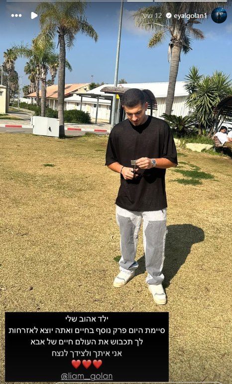 רגע משפחתי מרגש בבית משפחת גולן: ליאם גולן, בנם של הזמר אייל גולן והמנחה אילנית לוי, השתחרר אתמול (שני) מצה"ל במעמד משפחתי מרגש. האב הגאה שיתף את הרגע המיוחד עם עוקביו ברשתות החברתיות.