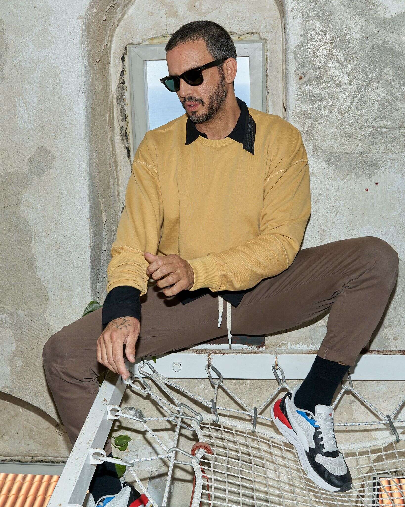 אז איך הגעת לתפקיד הנוכחי? "הכל היה מאוד ספונטני. עמית ביקש להשתמש בסטודיו שלי לצילומים נקיים לבגדים עצמם, ואני אמרתי לו שאם הבגדים מצטלמים אצלי, אז הם גם מצטלמים עליי. בוא נגיד שדי הכרחתי אותו שאהיה הדוגמן. הנה, עכשיו כולם יודעים עד כמה אני נואש", הוא משתף בכנות מפתיעה.
