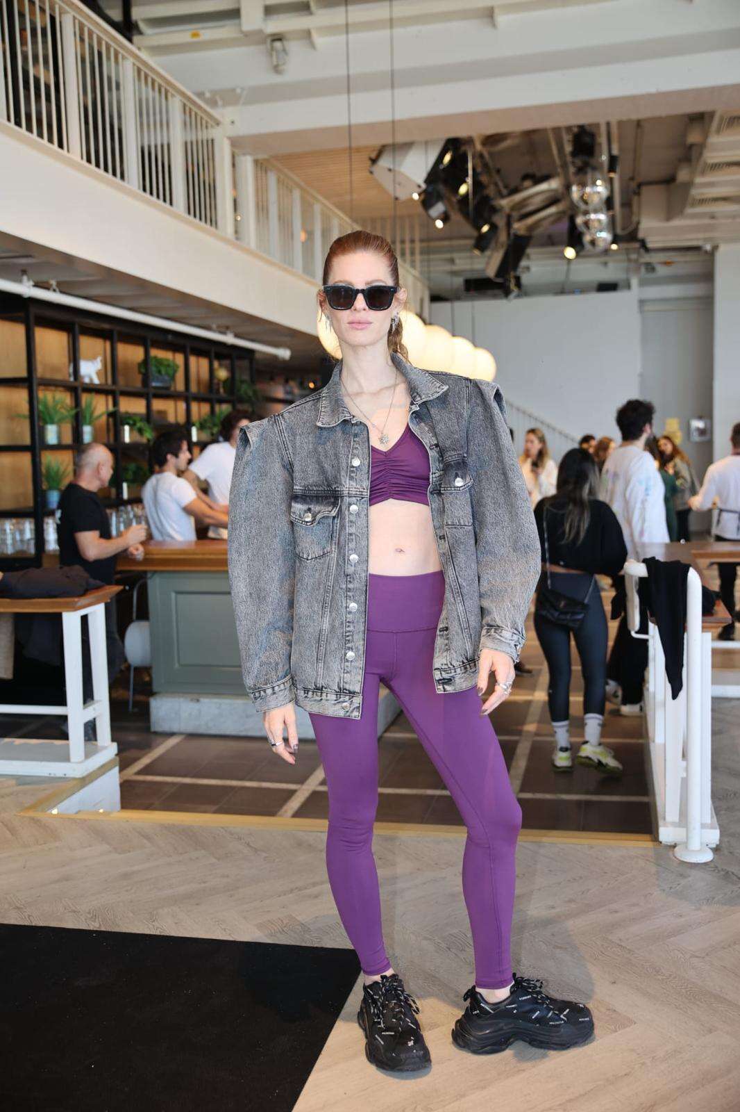 השחקנית יובל שרף הגיעה בסט סגול שכלל טייץ וגוזייה עם כיווצים במרכזה. היא שילבה את הסט עם זקט ג'ינס אוברסייז בצבע אפור משופשף שאהבנו, משקפי שמש שחורים ונעלי ספורט בצבע שחור עם הדפס פסים לבנים. הנעליים קצת מנמיכות את הלוק, וסניקרס לבנות היו מאווררות קצת את הצבעוניות ונותנות וייב קליל.