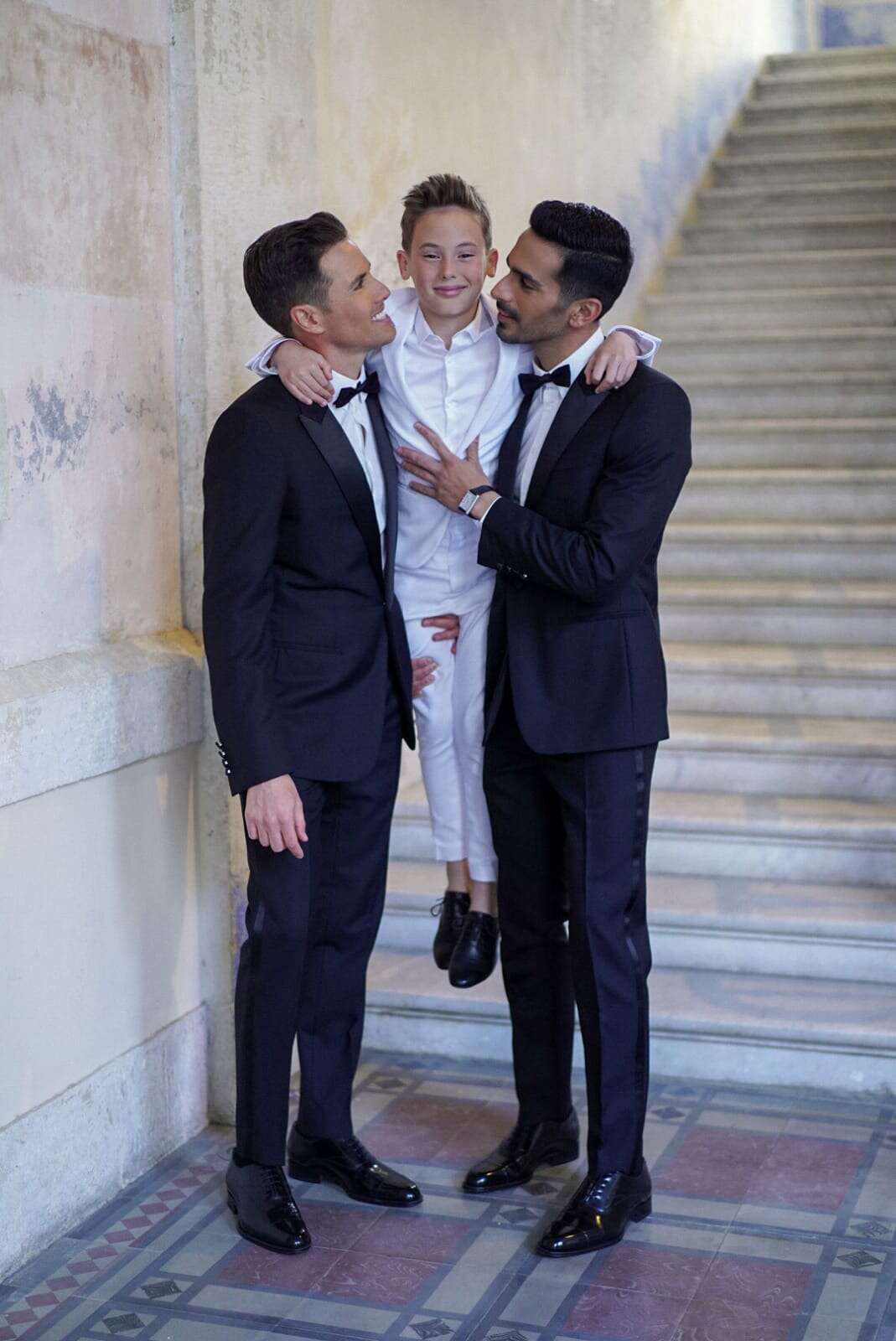 ולאירוע הבא. ינאי פרישר גוטמן ובן זוגו פלג לוי נישאו בחמישי האחרון בנוכחות משפחה וחברים. החתנים לבשו חליפות שחורות תואמות בשילוב חולצות לבנות מכופתרות, עניבות פפיון שחורות ונעליים אלגנטיות מבריקות. רוי פרישר גוטמן, הבן של ינאי ושל אמיר זכרונו לברכה, לבש טוטאל לוק לבן אלגנטי וריגש את כולם כשבירך את הזוג בחופה.