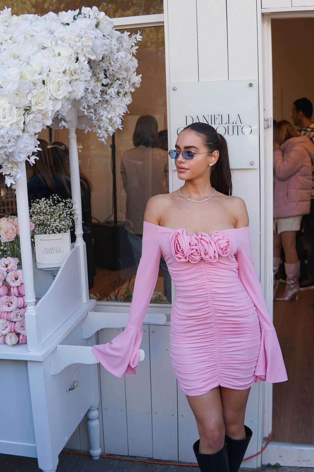נקנח עם השקת חנות התכשיטים של המעצבת והסטייליסטית דניאלה קפולטו. יעל שלביה הגיעה להשקה בשמלת מיני ורודה בהירה בגזרת אוף שולדרס, עם כיווצים במרכז, פרחים באזור החזה, ושרוולים ארוכים שמתרחבים בקצה היא הוסיפה מגפיים שחורים גבוהים ומשקפי שמש עם עדשות כחולות. אהבנו מאוד את השמלה האביבית שהתאימה לאופי האירוע, אבל פחות התחברנו לשילוב של המגפיים, שנראים שייכים לסיפור אחר.