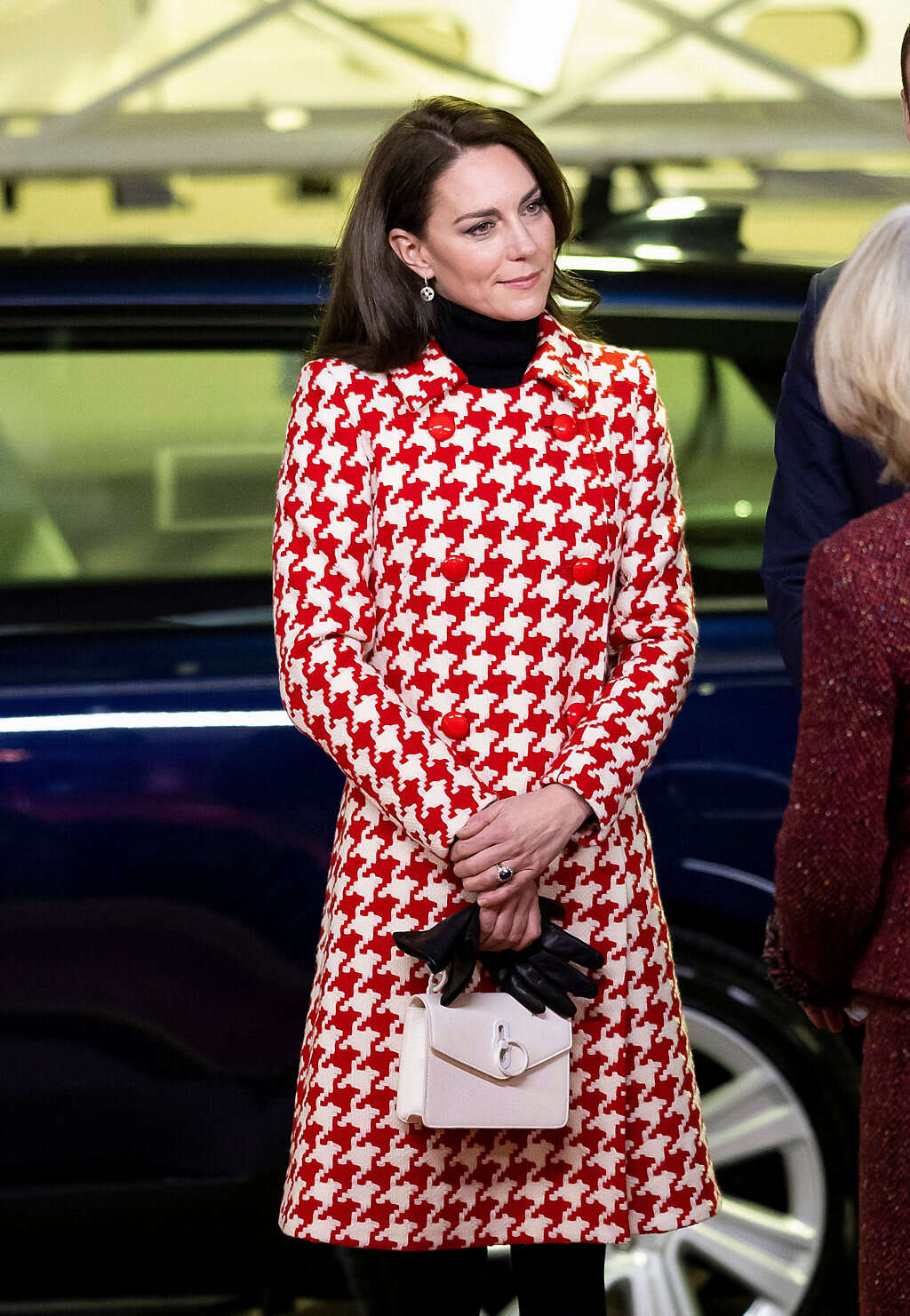 מה שבאמת משך את תשומת ליבנו הוא כמובן התלבושת של הנסיכה, שלבשה פריט שהיה נראה לנו מוכר. הנסיכה לבשה מעיל מחויט של המעצבת קתרין ווקר, בדוגמת פפיטה בצבעי לבן ואדום עם דש כפול וכפתורים אדומים. היא לבשה את המעיל בעבר ב-2018. הנסיכה לבשה מתחת למעיל חולצת גולף שחורה מחממת, והוסיפה גרביונים באותו הצבע, עם מגפי עקב שחורים מזמש. היא הוסיפה תיק קלאץ' של מולברי בצבע ורוד בהיר, כפפות עור שחורות, ועגילי יהלומים כסופים.
