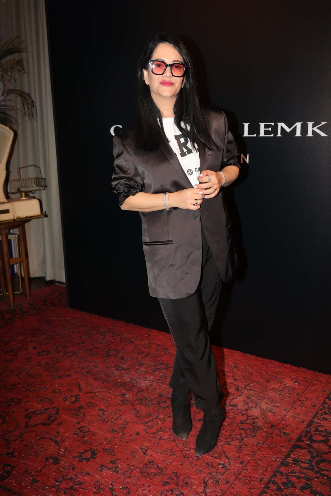מיקי מוכתר כמעט הצליחה לייצר טוטאל לוק מדויק, אבל נפלה בבחירת הבד של הז'קט. היא לבשה מכנסיים שחורים מחויטים בשילוב עם עקבי שפיץ, וטישירט לבנה עם הדפס שחור, עד כאן מעולה. ואז הגיע הז'קט הגדול והמבריק, וייצר חוסר פרופורציות בטוטאל לוק והתנגשות בין מרקמי בדים, ז'קט מבד זהה למכנסיים באורך שמגיע לאגן, היה מקפיץ את הכל.