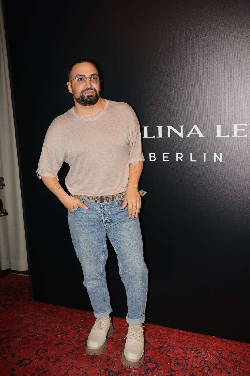 הגבר היחיד בסקירה הפתיע בצבעוניות מעניינת, ולא בחר בשחור ולבן. גילי אלגבי לבש ג'ינס כחול בהיר עם קיפול בסופו, טישירט אוברסייז פרומה בשרוולים בצבע פודרה, מגפיים עם שרוכים בצבע אבן עם סוליות מוגזמות וחגורה ממותגת שדווקא עליה היינו מוותרים, אבל סך הכל טוטאל לוק מוצלח ומרענן.